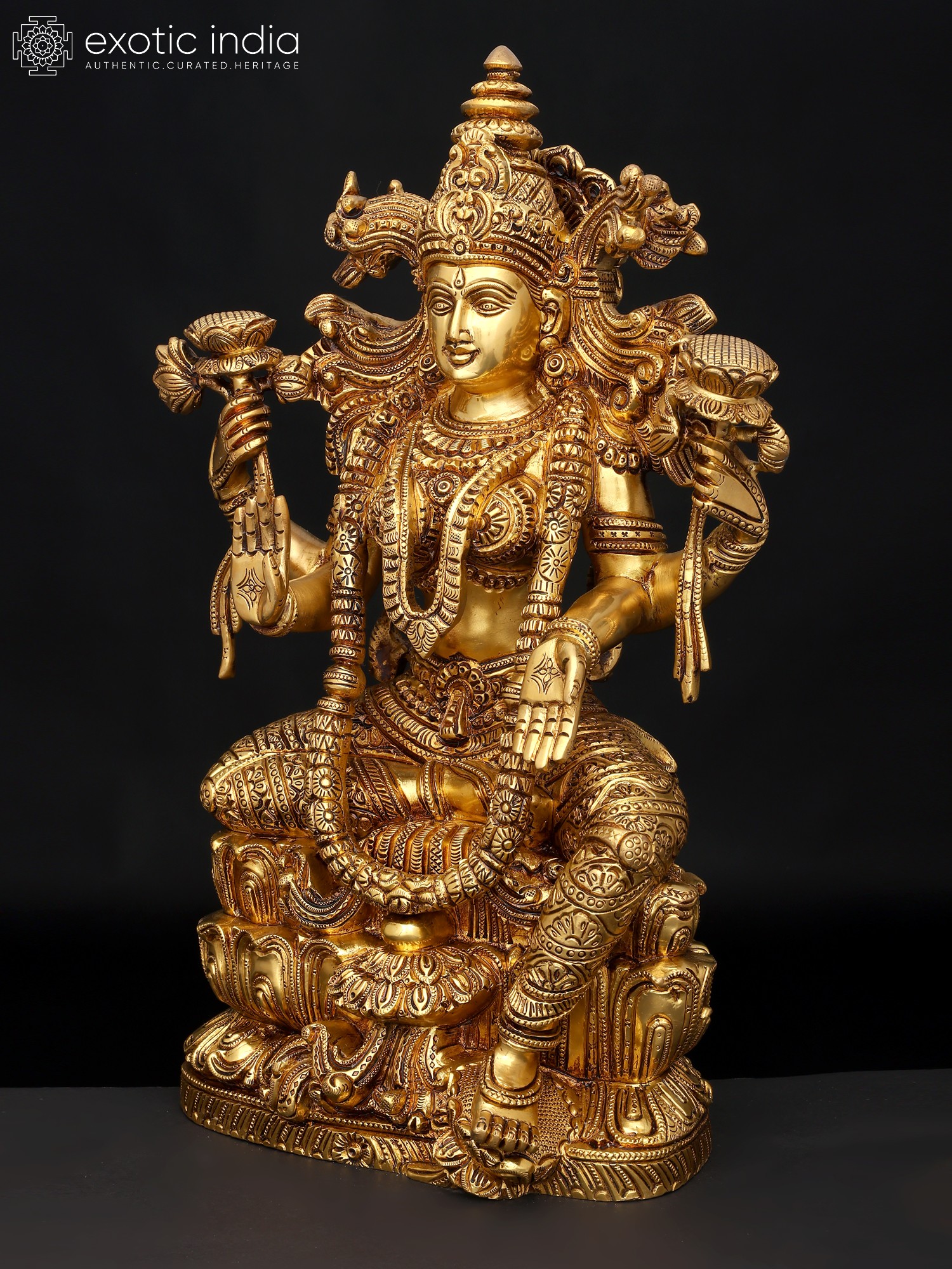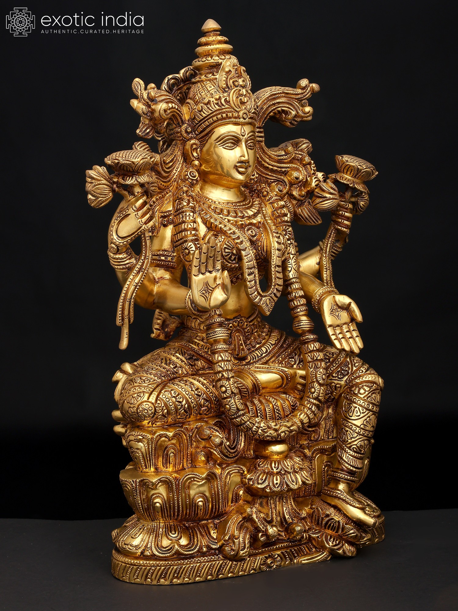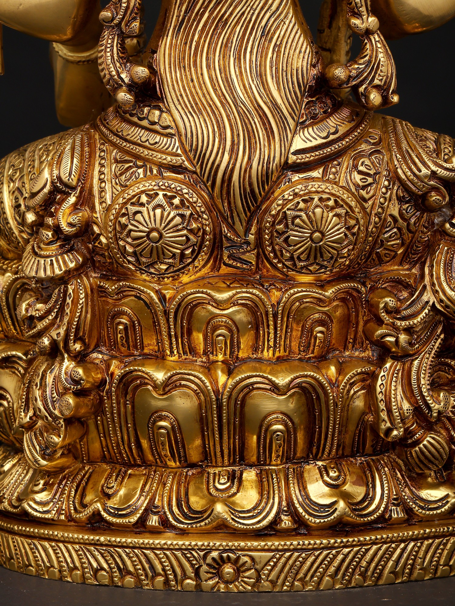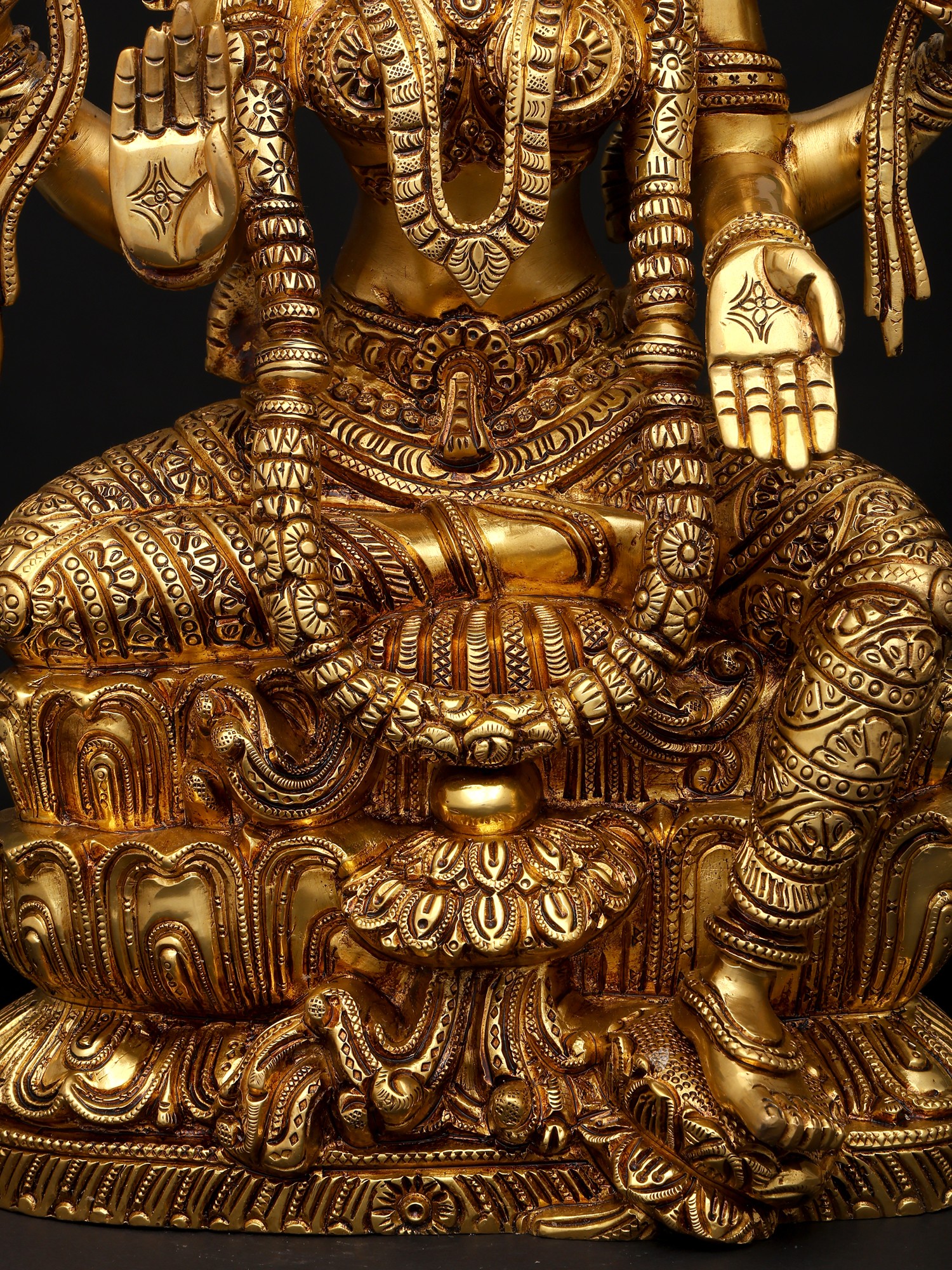 4" Small Superfine Lakshmi Ganesha Saraswati Brass Statues with Floral Prabhavali