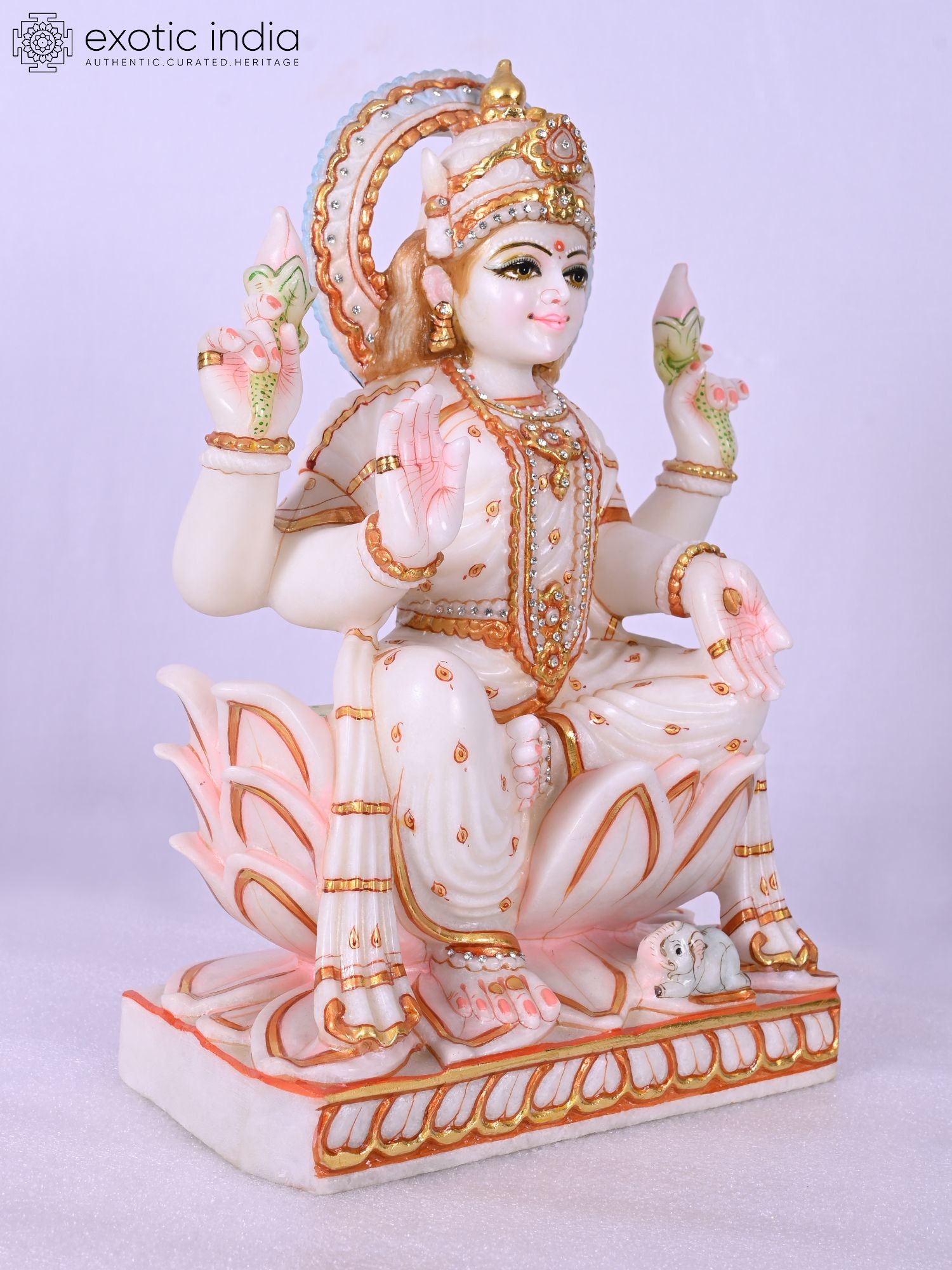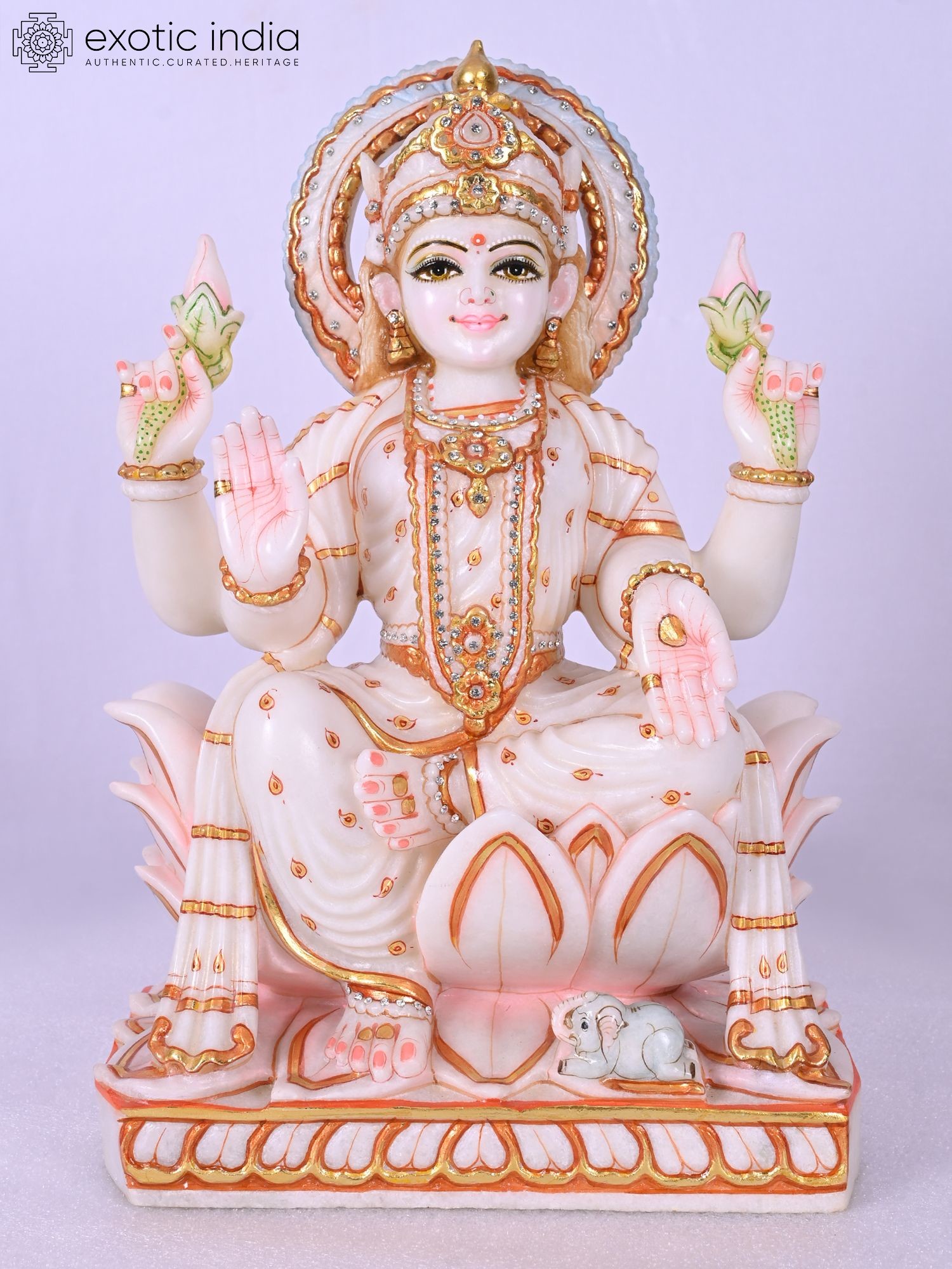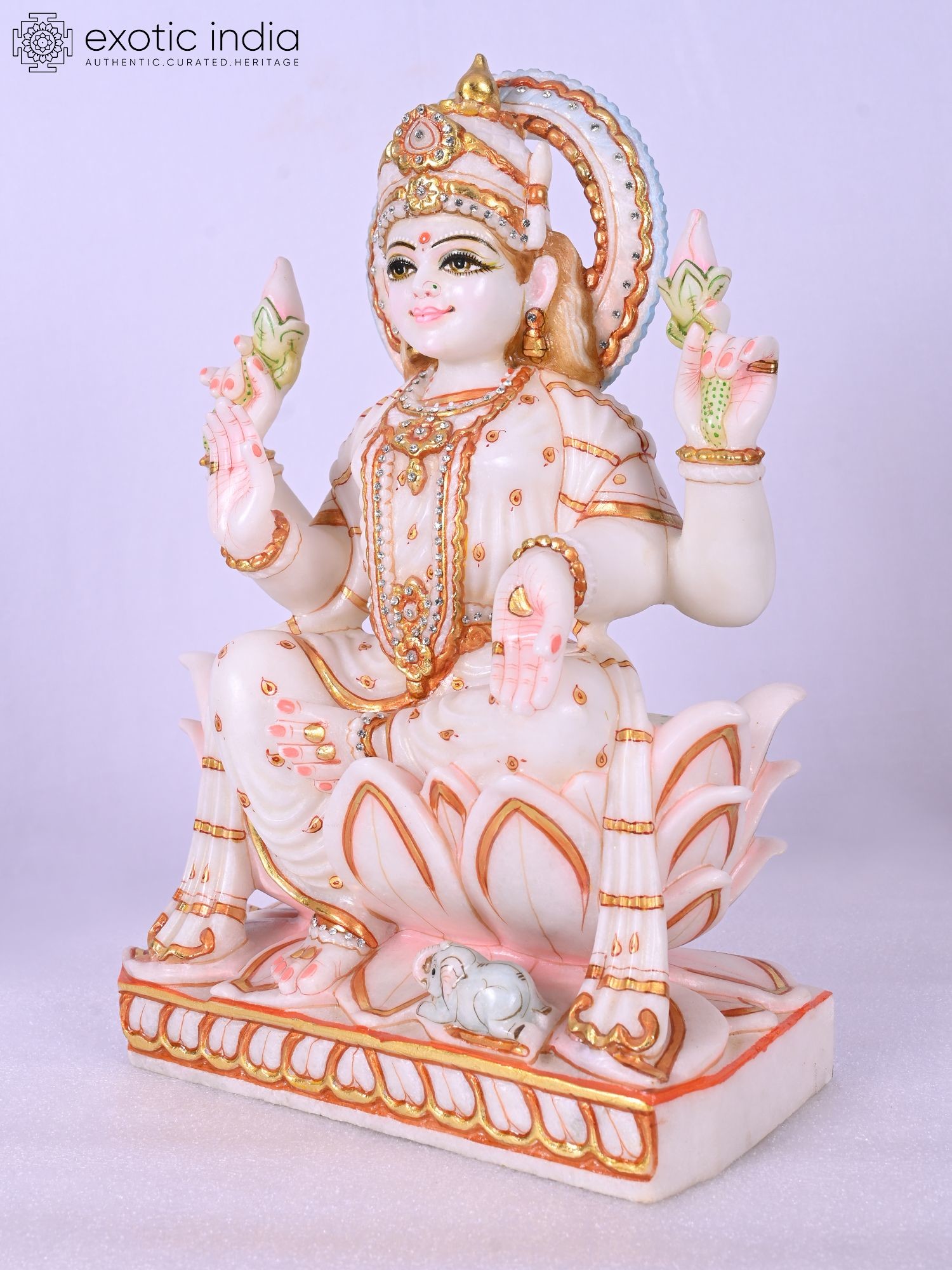 Features an elephant at the base, a traditional symbol associated with Lakshmi.