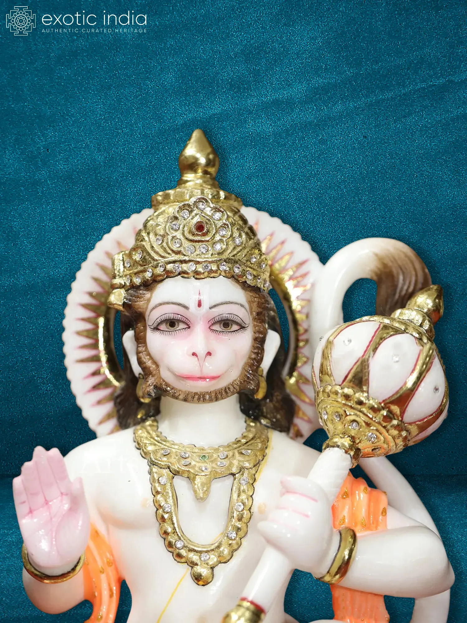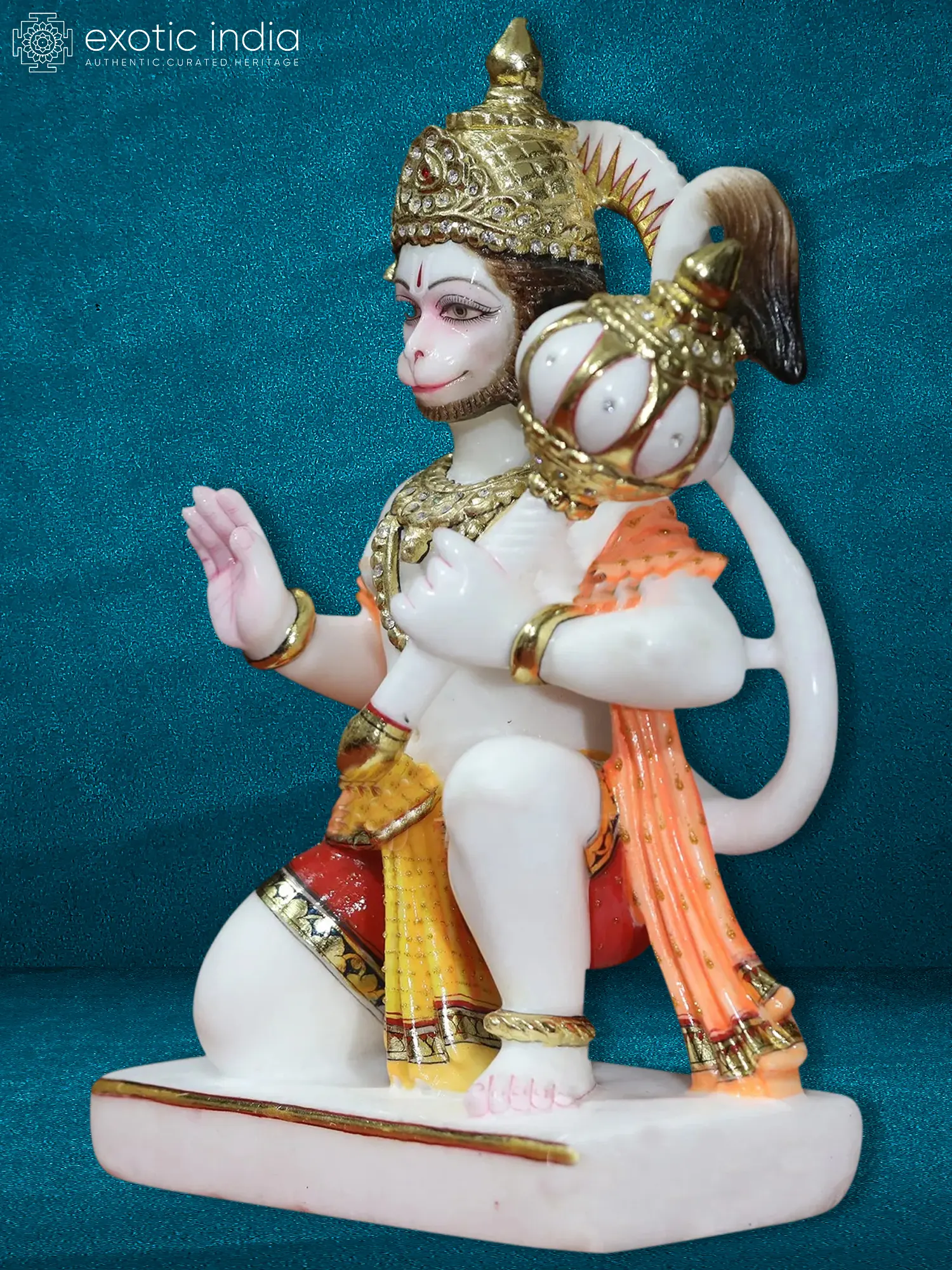 15" Hanuman Blessing Position Murti In Marble | White Makrana Marble Statue