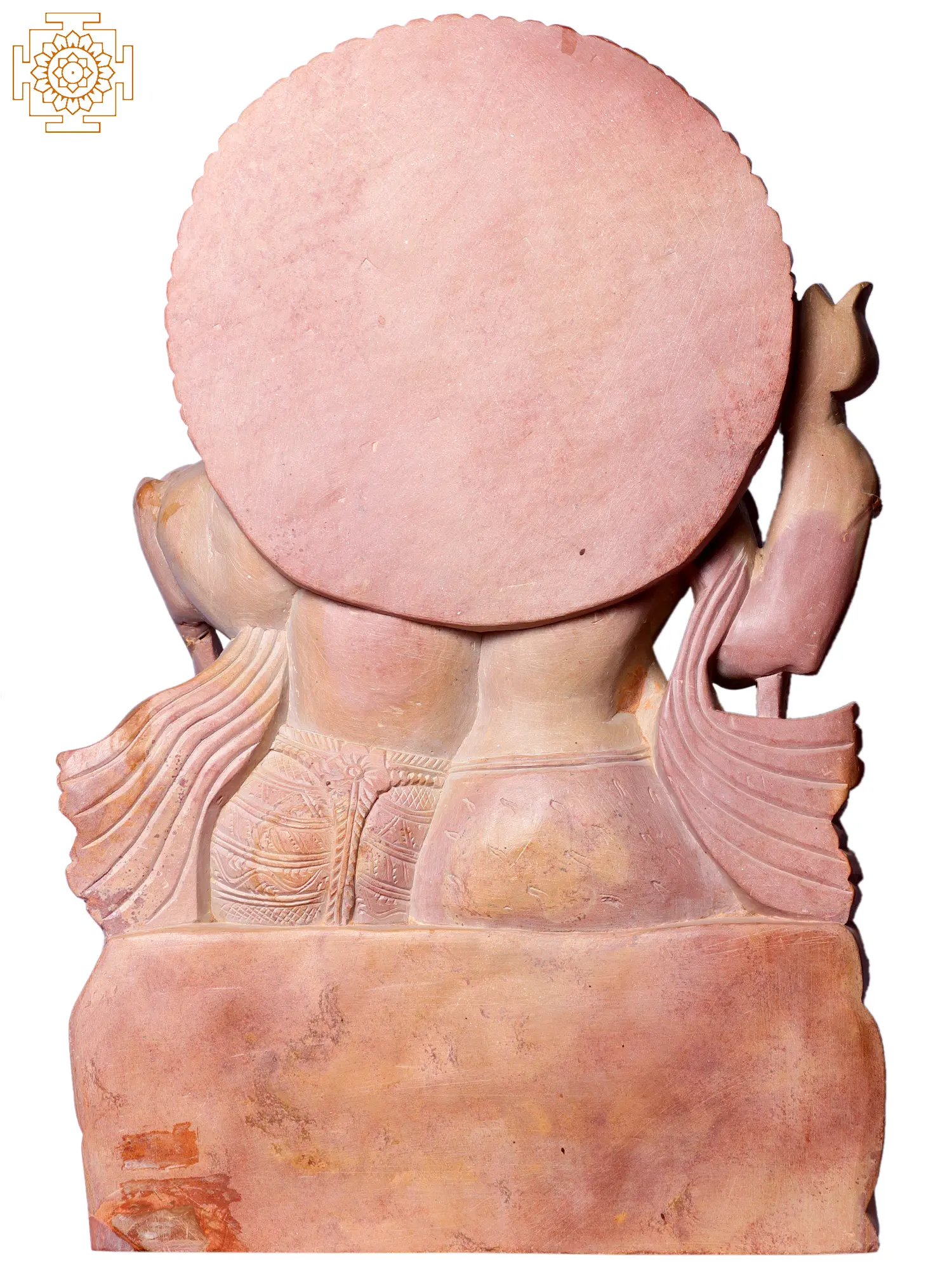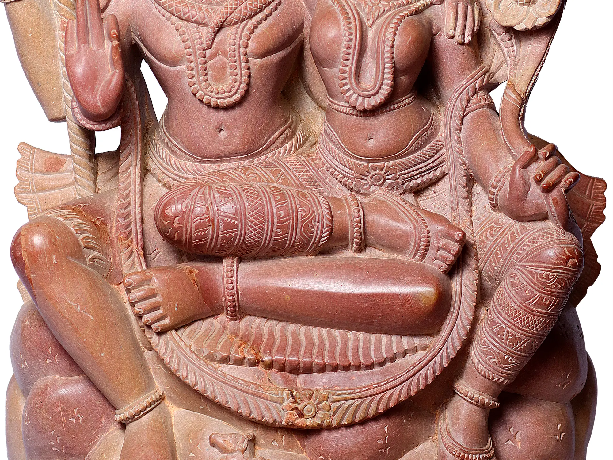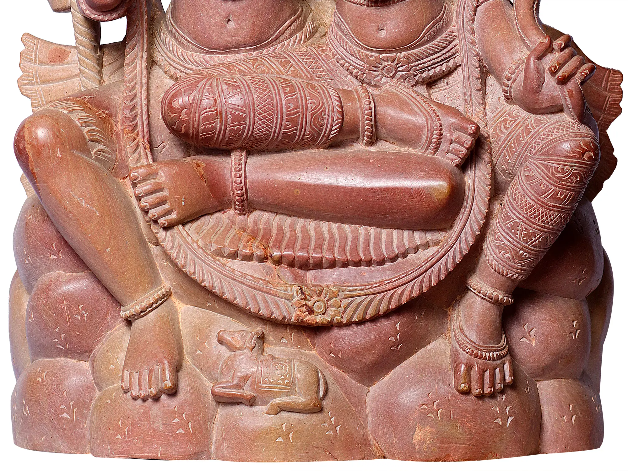 10" Shiva Parvati with their Children Ganesha and Kartikeya | Red Stone Statue | Hand Carved