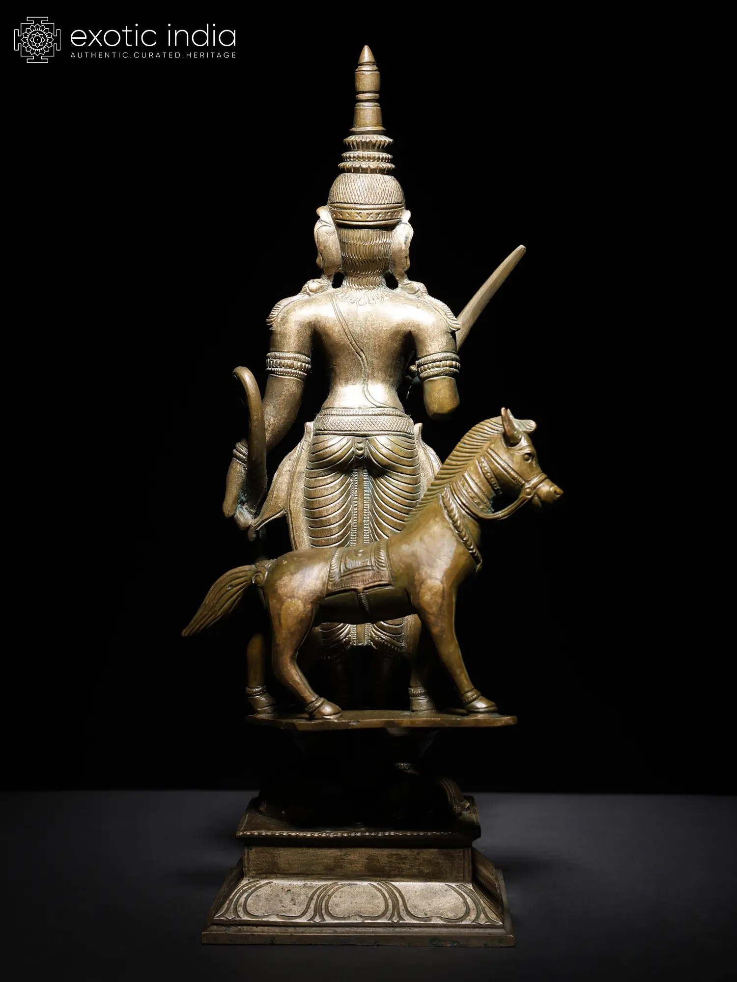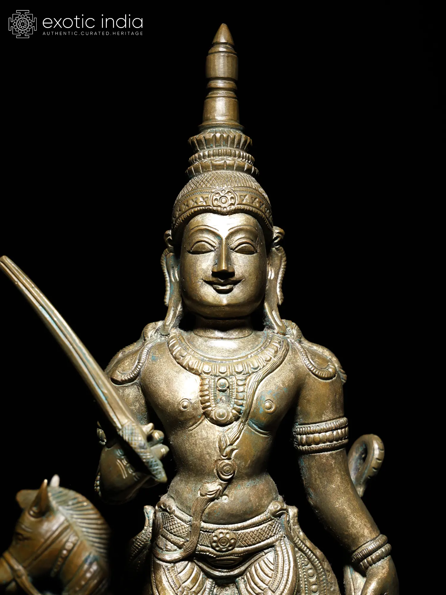 Smiling benevolently as if to announce his arrival in Kaliyuga, Bhagwan Kalki, the 10th incarnation or avatar among the Dashavatara of Vishnu is depicted in this divine Swamimalai bronze.