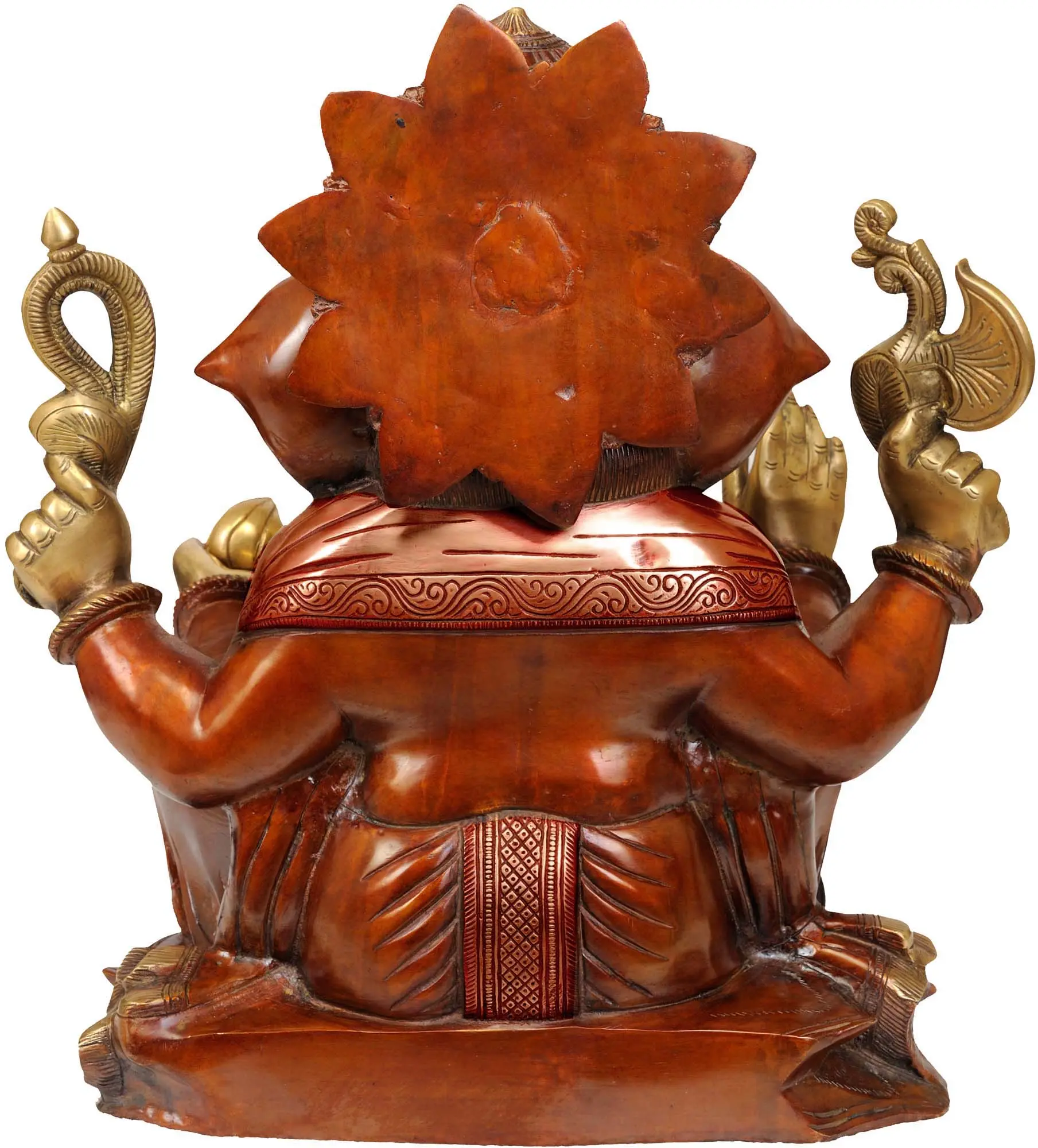 15" Lord Ganesha Seated on Lotus In Brass | Handmade | Made In India
