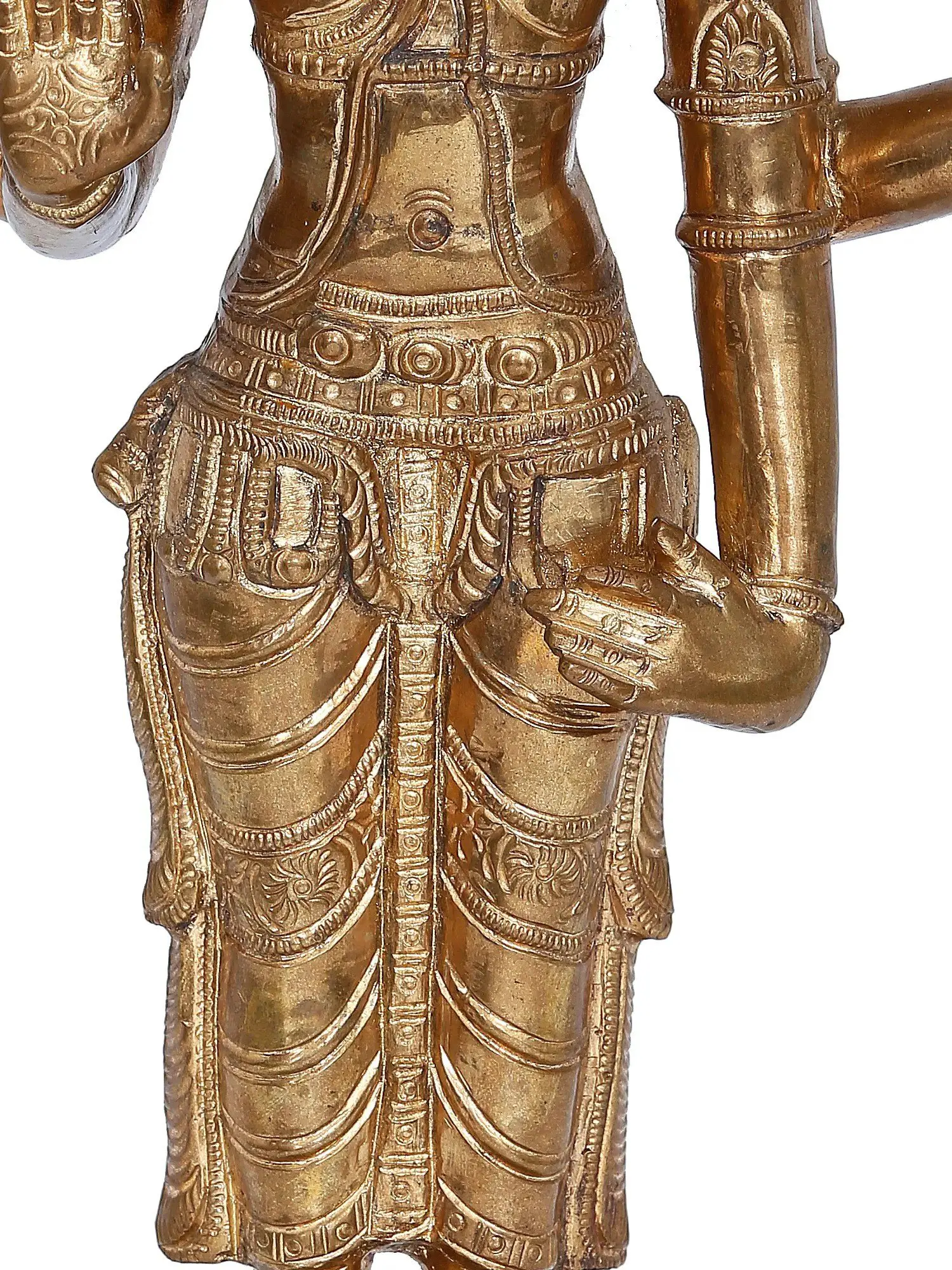 A. Panchaloha bronze statues are made through a process of lost wax casting, hence they are solid. To know more about how bronze statues are made, please read our article on Panchaloha Bronze Statues. Whereas, brass statues are made through a process of clay casting, hence are hollow.