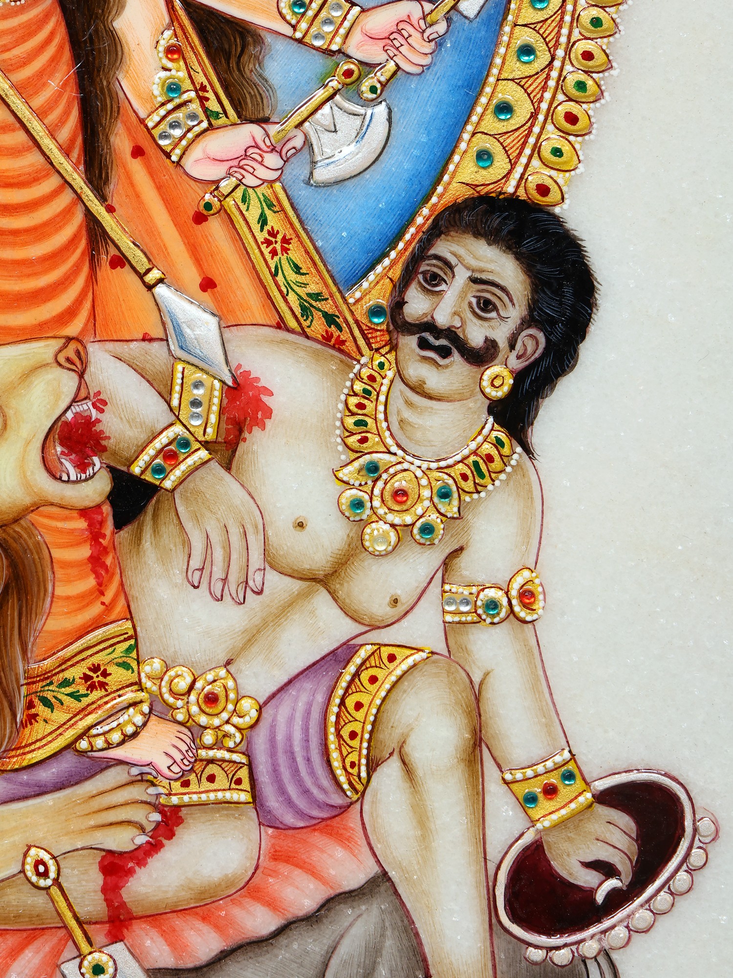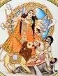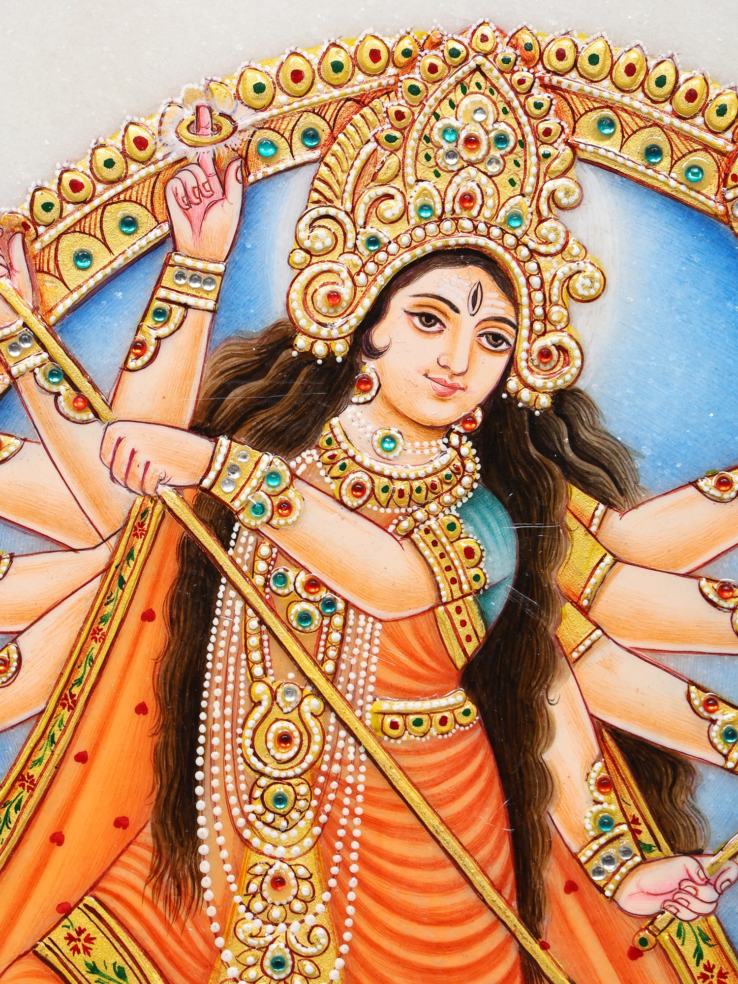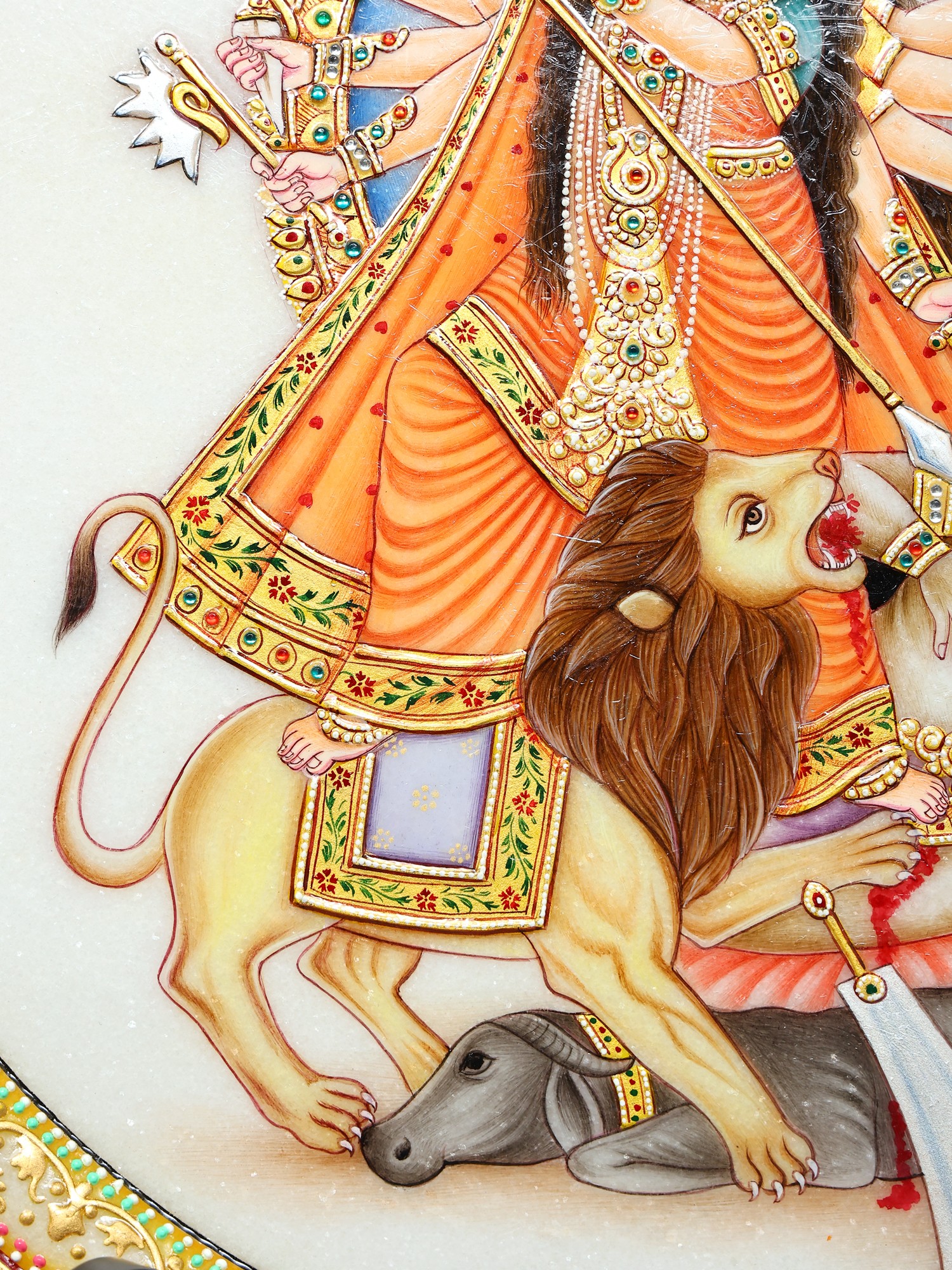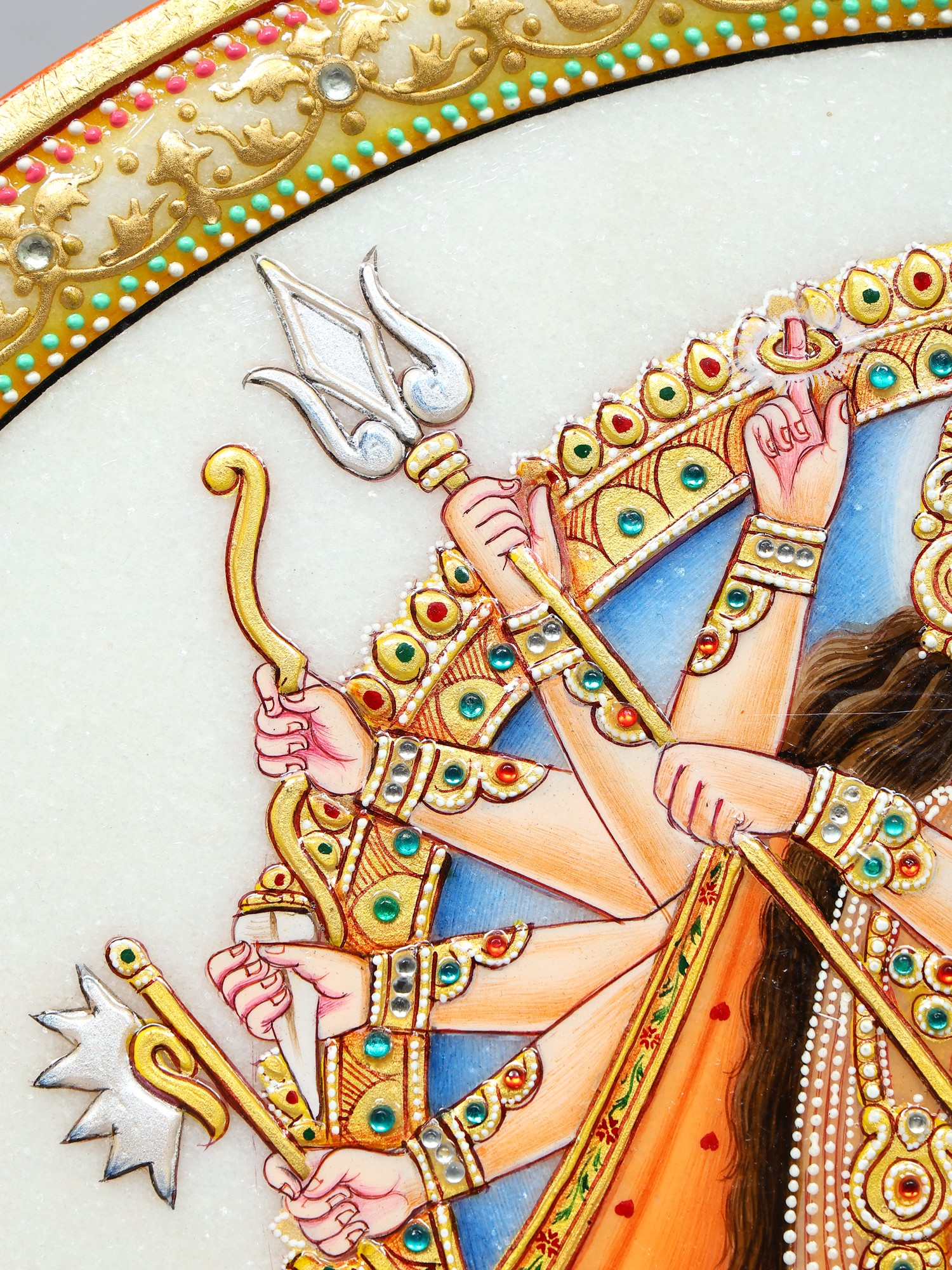 15" Mahishasuramardini (Goddess Durga) Marble Plate with Wooden Stand