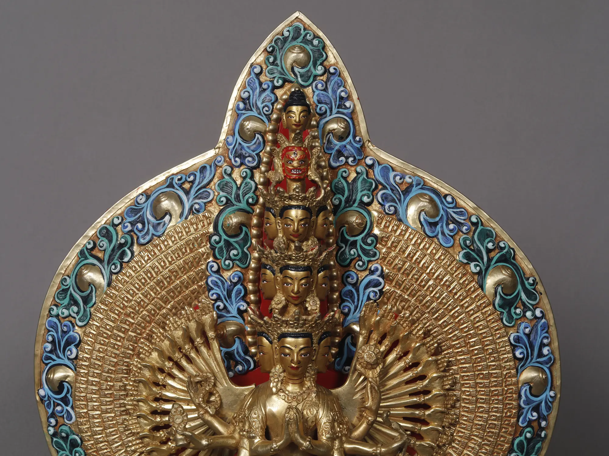 13" Shadakshari Lokeshvara Idol from Nepal | Nepalese Gilded Copper Statue