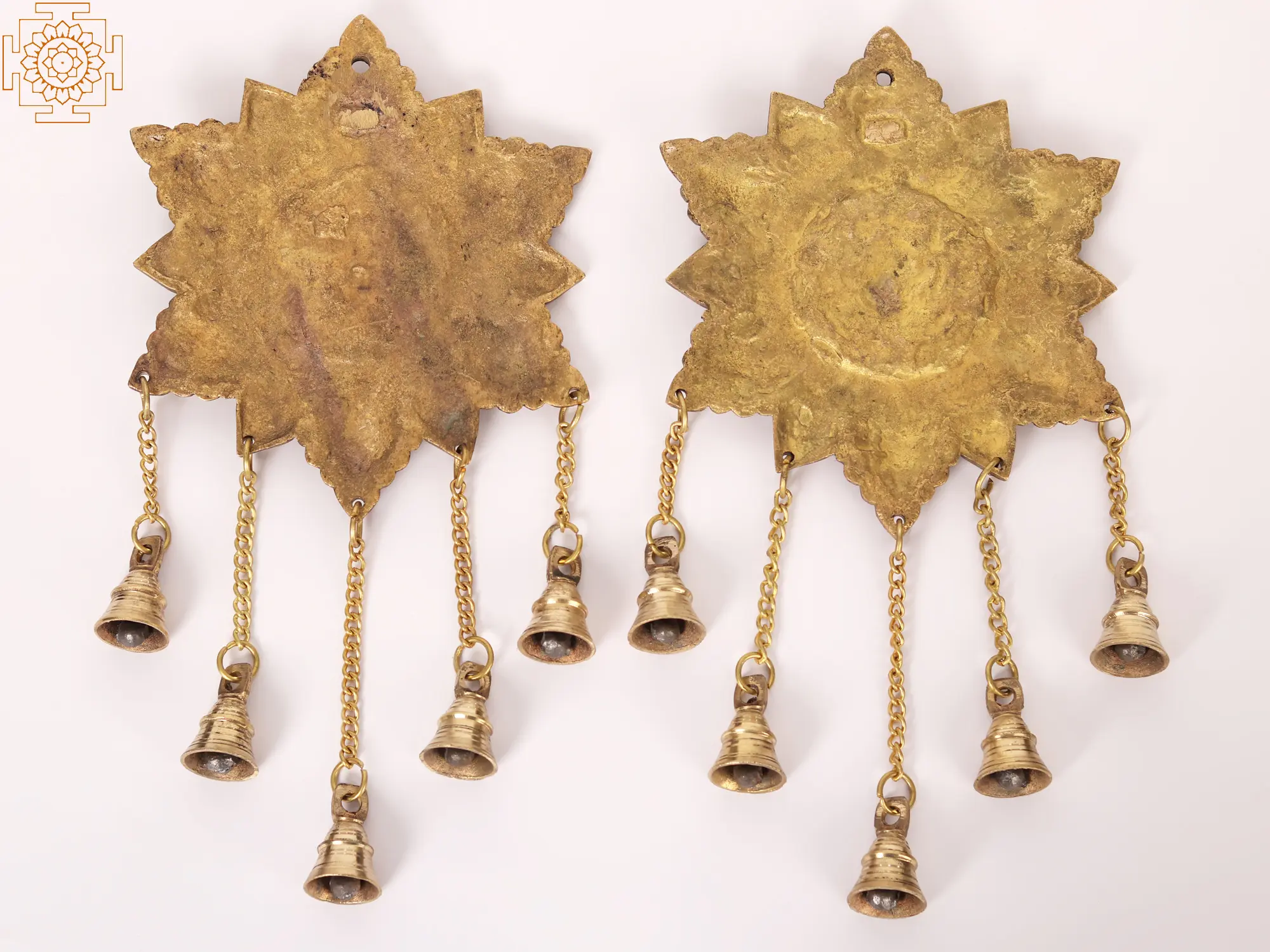Lord Ganesha and Devi Lakshmi symbolize Shubh (auspicious) and Labh (gain). They are often worshipped together to ensure the healthy inflow of wealth. This Pair of Ganesha Lakshmi Wall Hanging Bells in Brass combines the divine energies of Lord Ganesha and Goddess Lakshmi. Crafted with intricate detail, it features Ganesha, the remover of obstacles, and Lakshmi, the bestower of wealth and prosperity. The dangling bells produce sweet, harmonious sounds that bring a sense of tranquility and auspiciousness. This pair serves as both a decorative masterpiece and a symbol of divine blessings, making it a cherished addition to homes, inviting good fortune, and the removal of obstacles for a prosperous and harmonious life.
