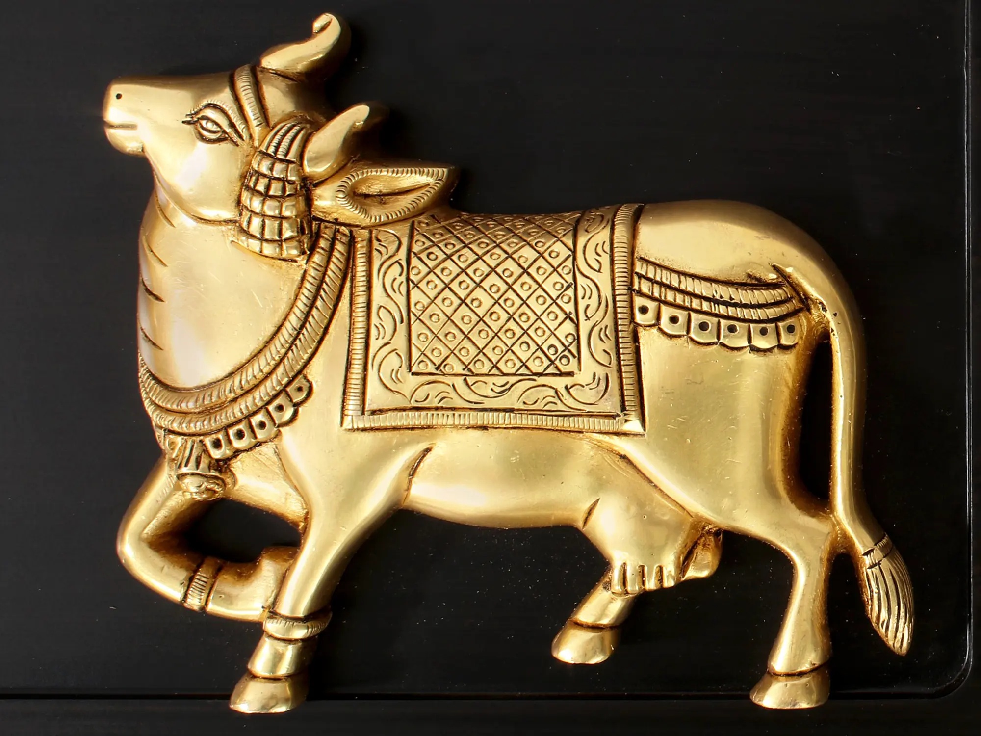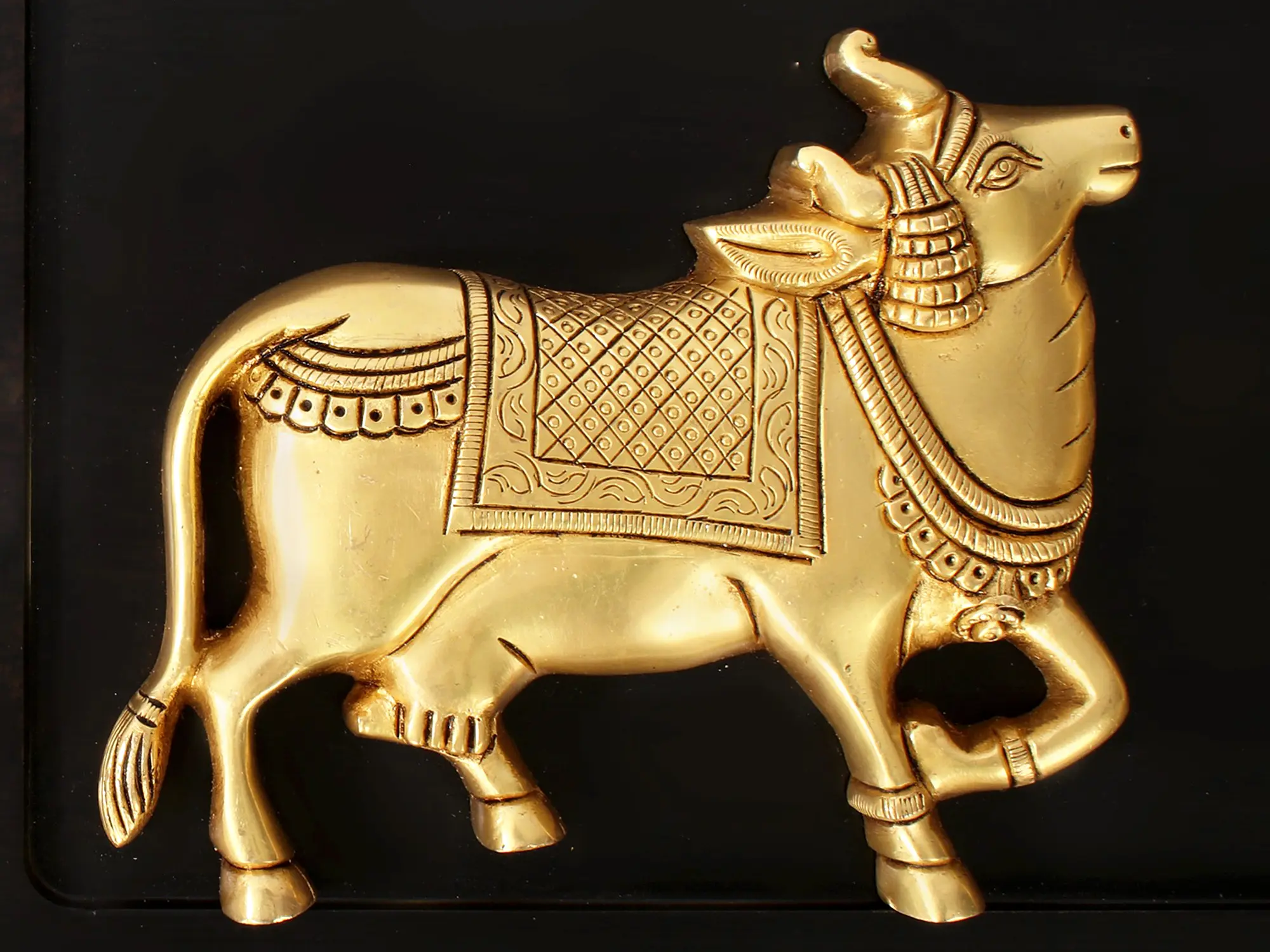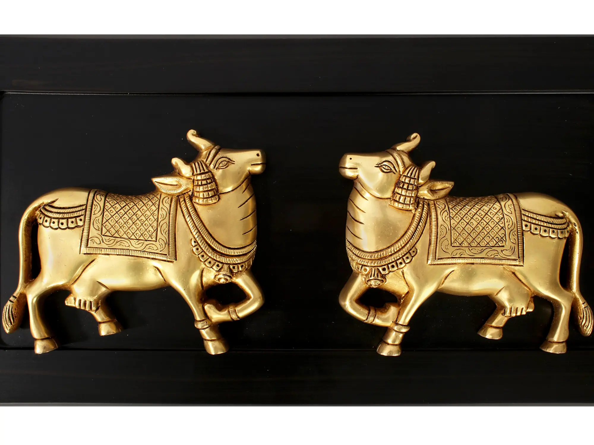 Crafted with exquisite precision, the Pair of Kamadhenu, fashioned from gleaming brass, captures the essence of divinity with resplendent grace. Their eyes, pools of wisdom, seem to hold the secrets of the universe. Resting within a wooden frame, these divine bovines (Kamadhenu) exude an enchanting charm, whispering tales of ancient desires and dreams. These Wish Fulfilling Cows, an embodiment of celestial abundance, stand as a testament to the artistry of tradition, ready to bestow blessings upon those who seek their benevolent presence.