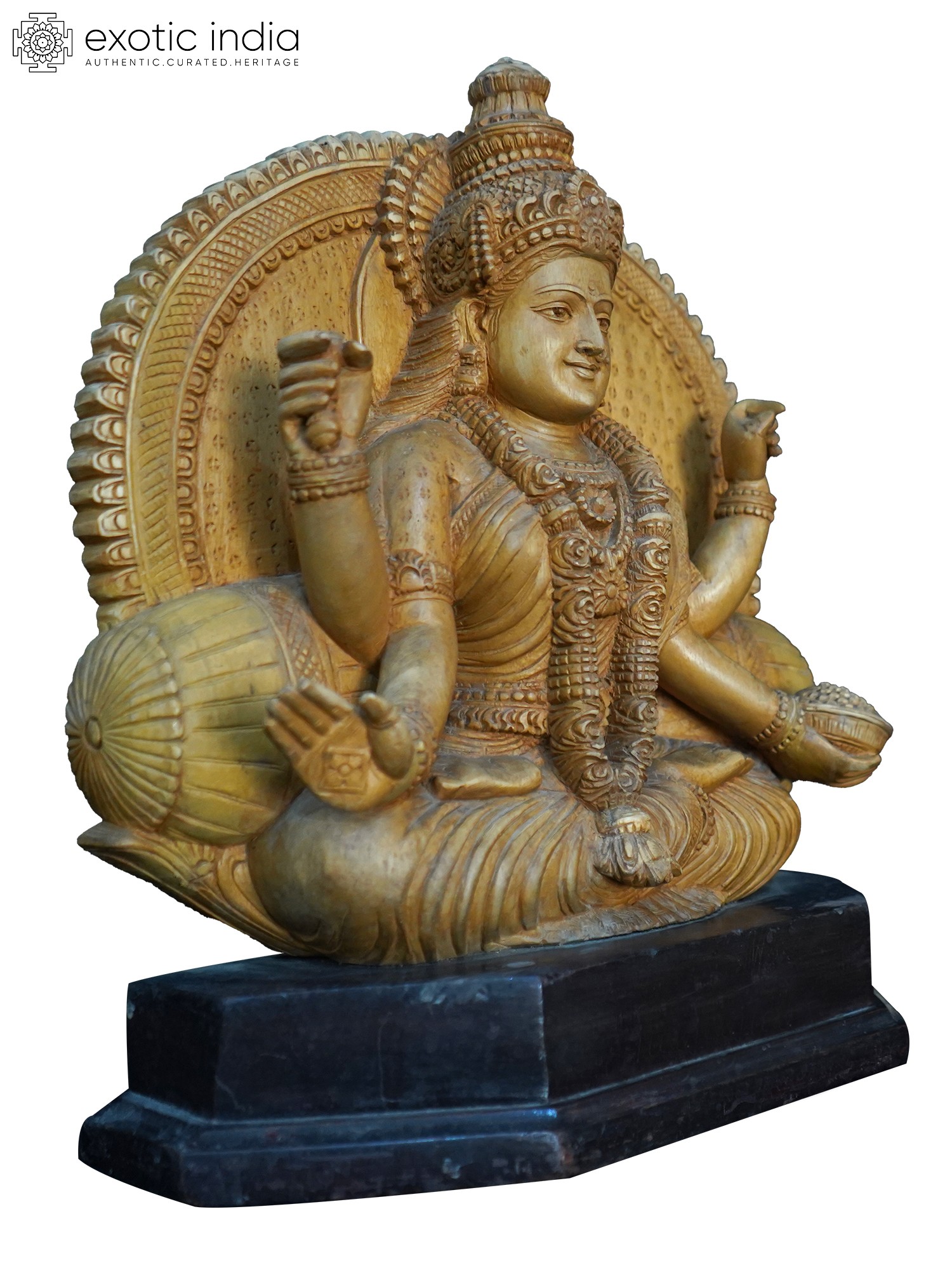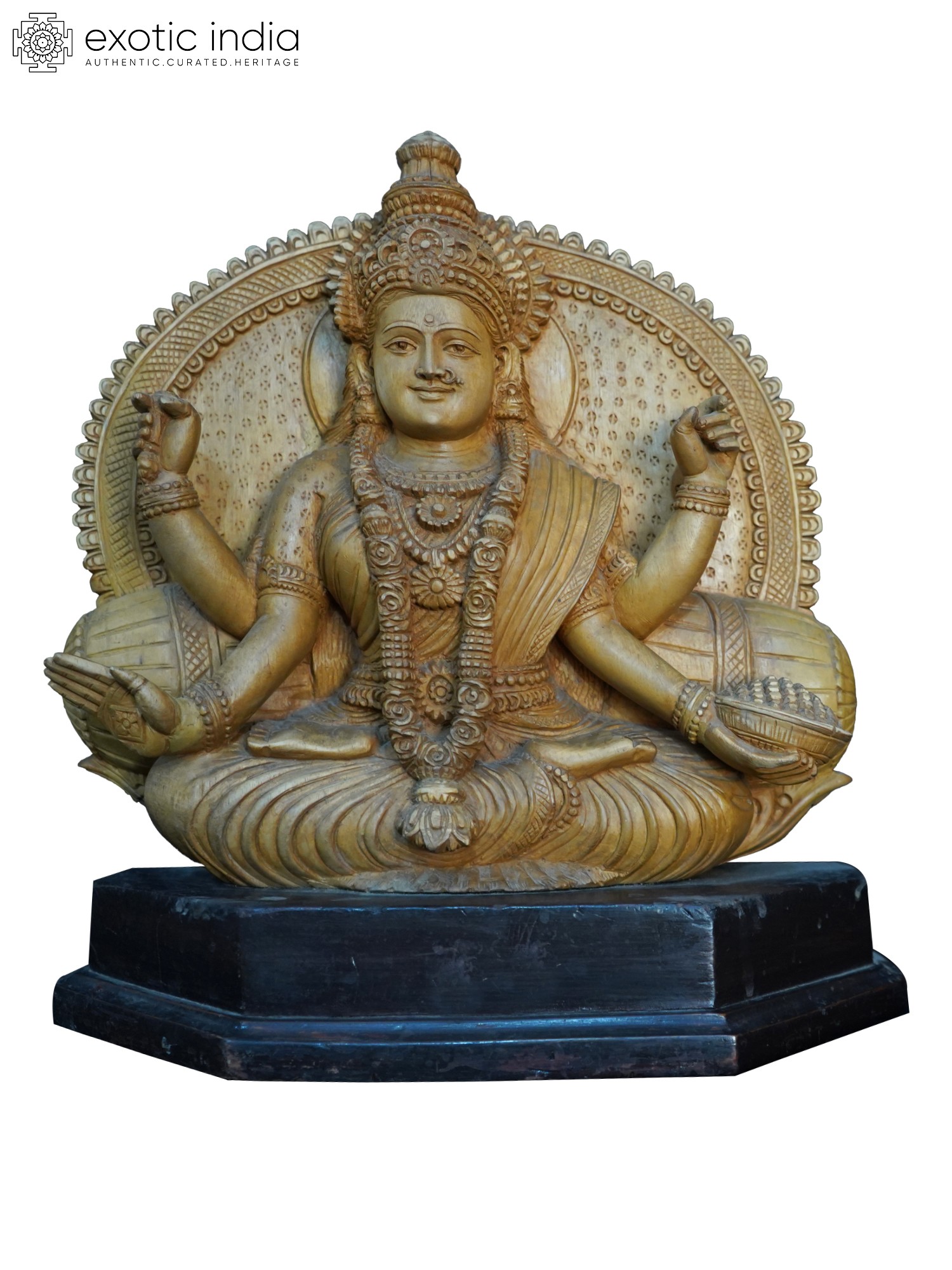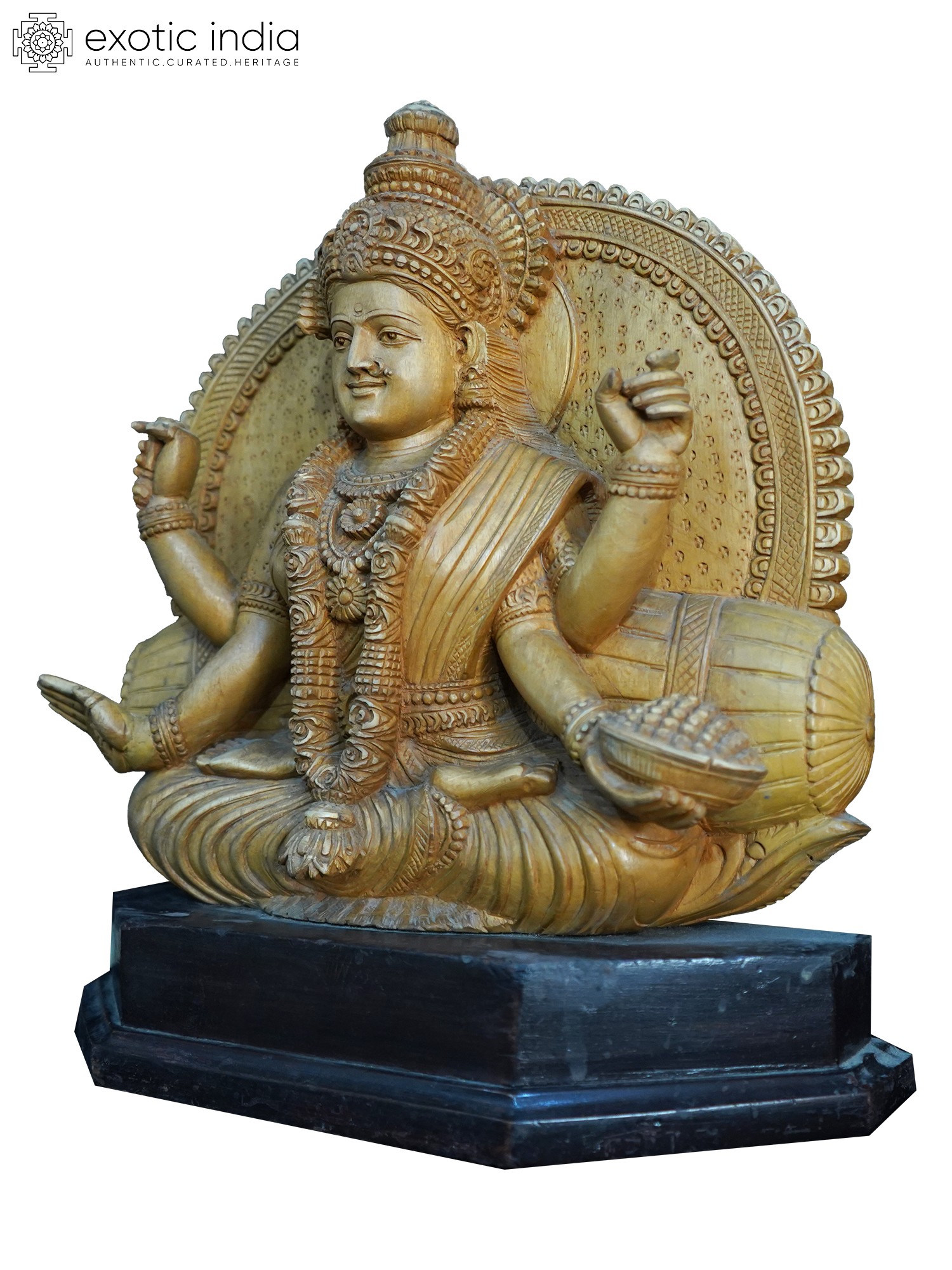 24" Blessing Goddess Lakshmi Seated on Lotus | Wood Carving