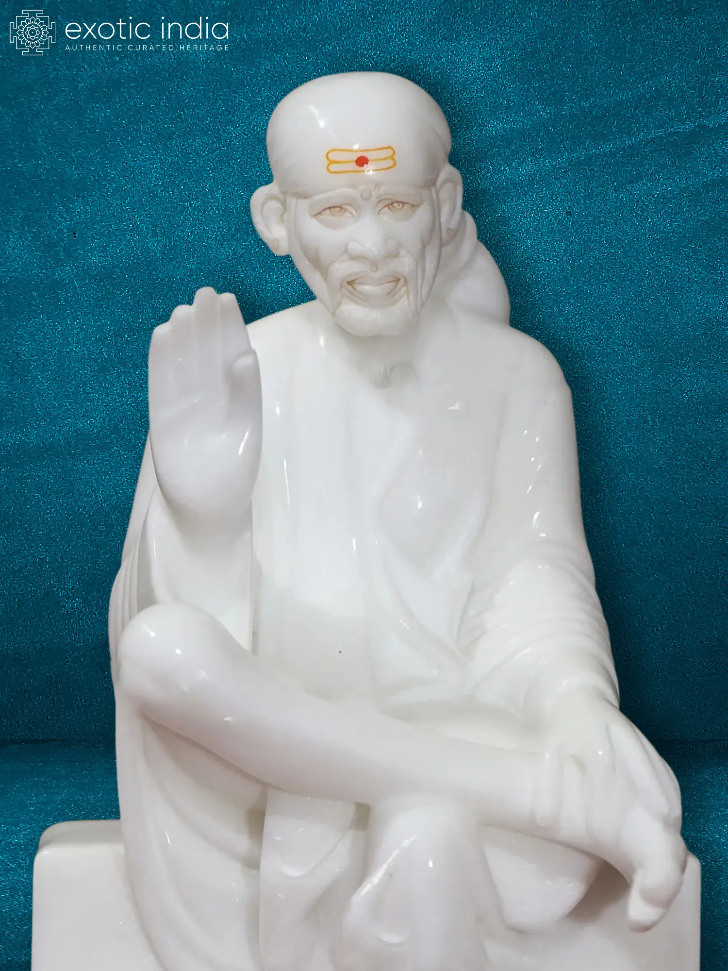18" Spiritual Elegance Idol Of Sai | White Makrana Marble Figurine