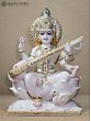 9" Goddess Saraswati Seated Posture On Kamalasana | Super White Makrana Marble Idol
