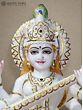 12" Seated Goddess Saraswati Sculpture | White Makrana Marble Idol