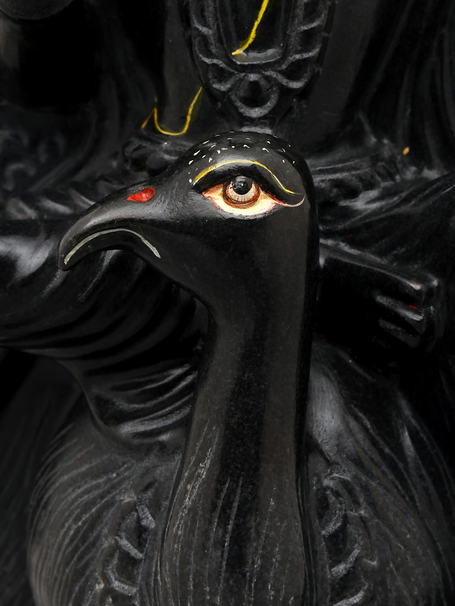 17" Little Krishna Leela - Wood Pedestal With Inlay Work | Handmade Rosewood Home Decor Item