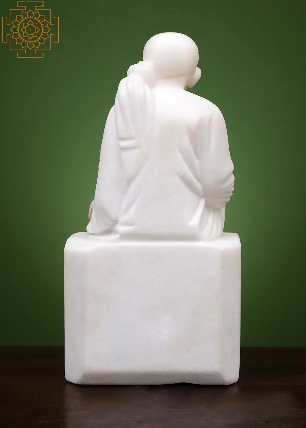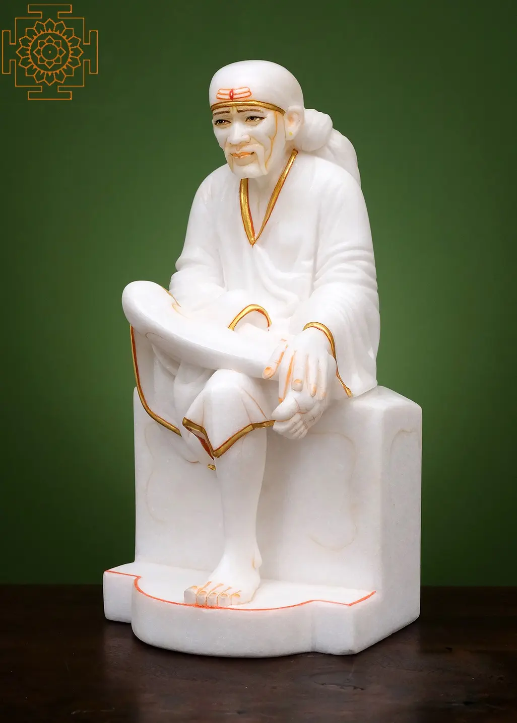 15" Shirdi Sai Baba Sitting Statue | Handmade | White Marble Shirdi Sai Baba | Shirdi Sai Baba Moorti