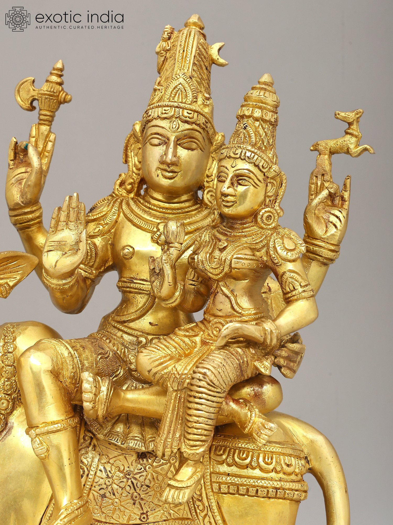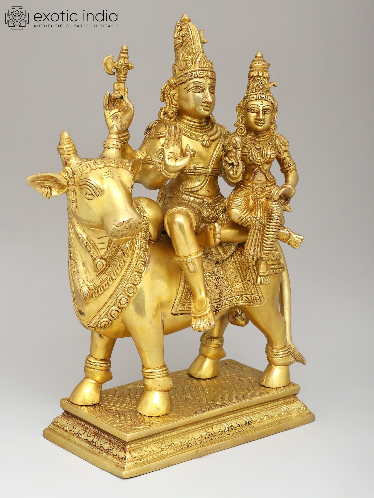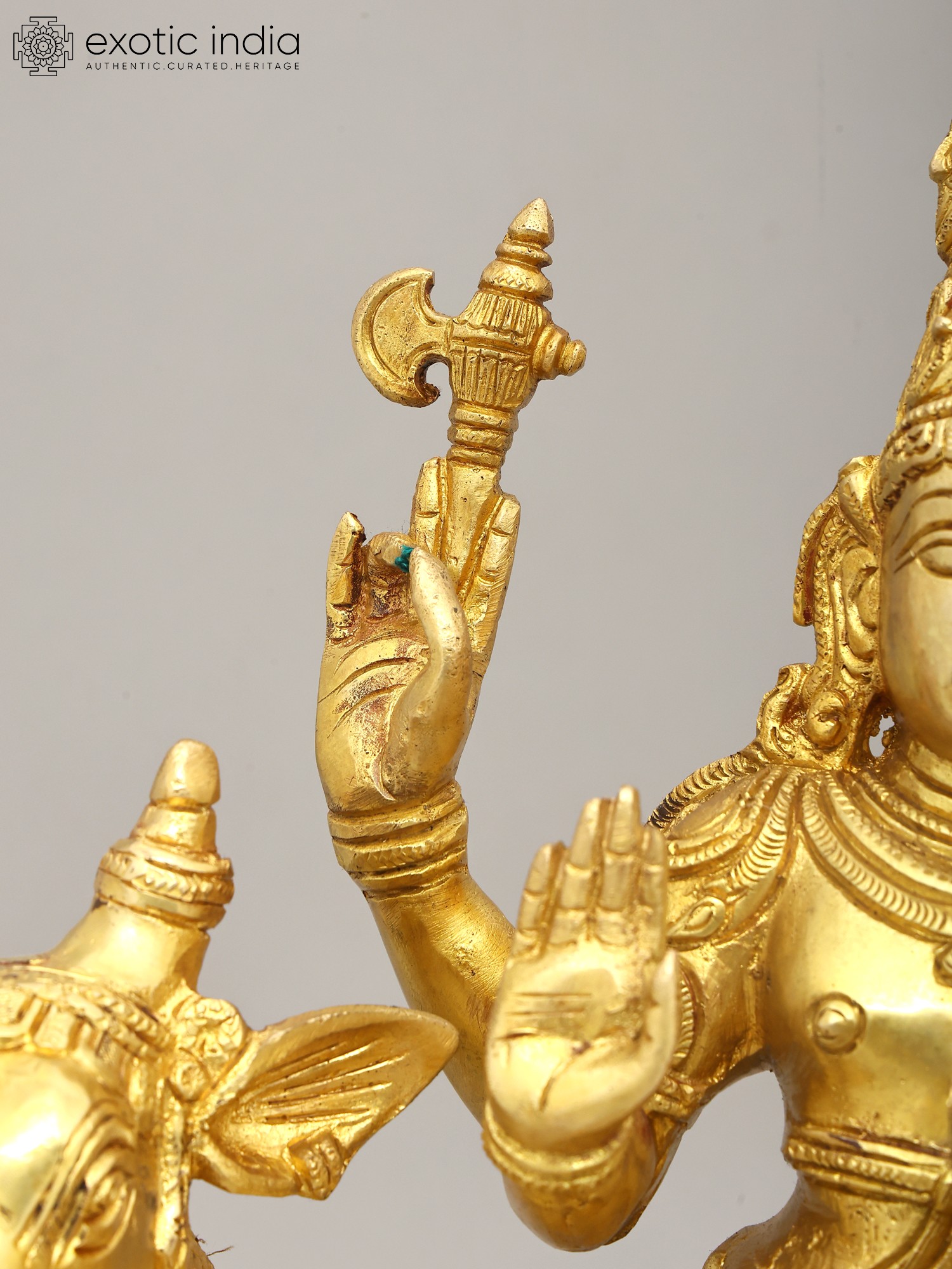 26" Gold and Silver Sixteen Armed Dancing Lord Ganesha Brass Statue