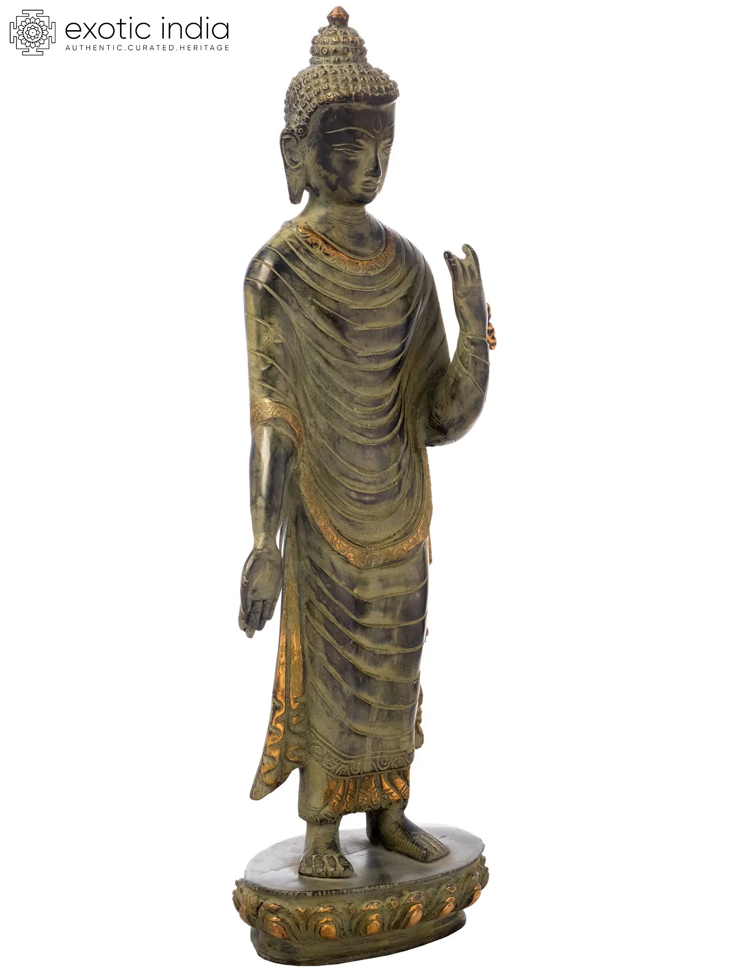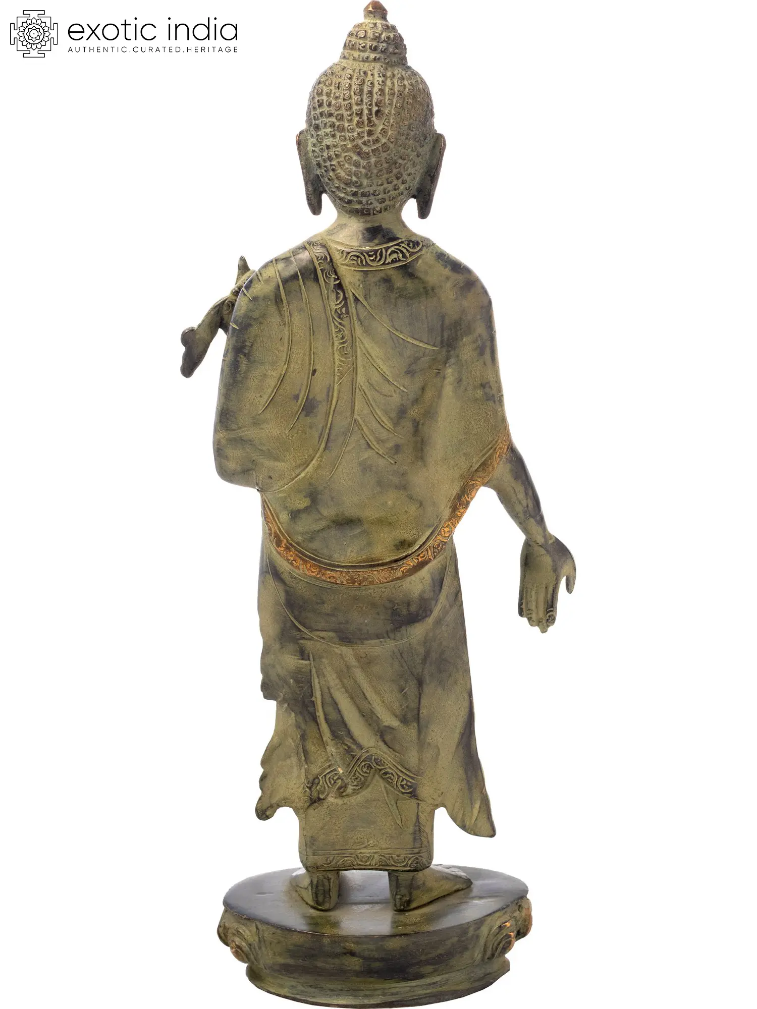 15" Standing Buddha (Tibetan Buddhist Deity) In Brass | Handmade | Made In India