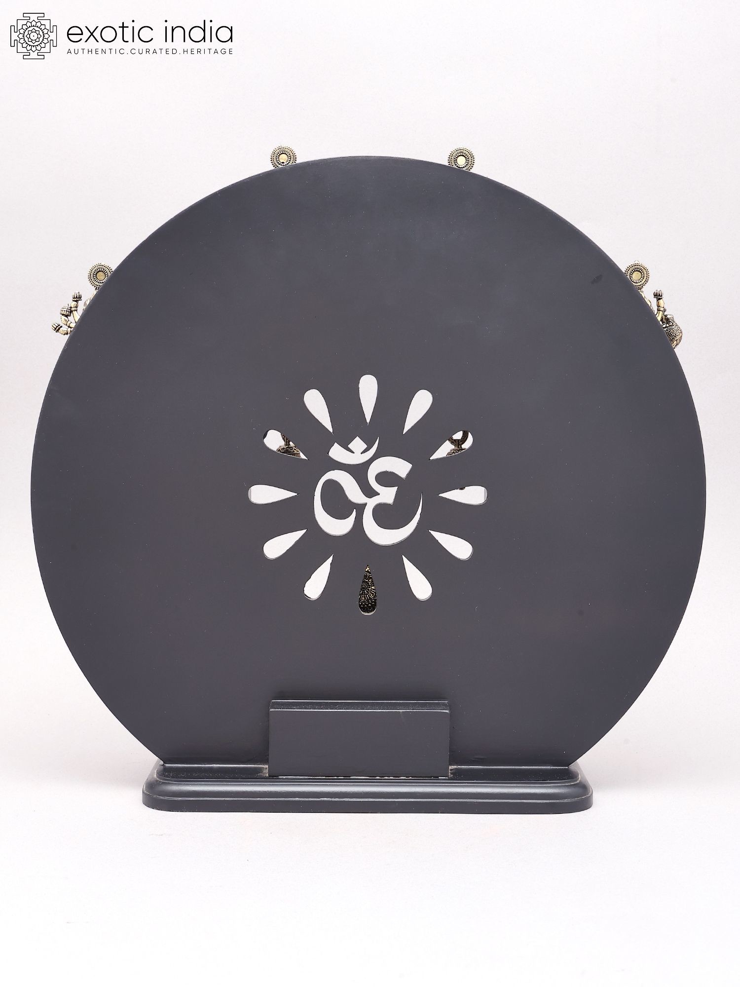 Mounted on a designer Om frame, symbolizing auspiciousness and spiritual significance.