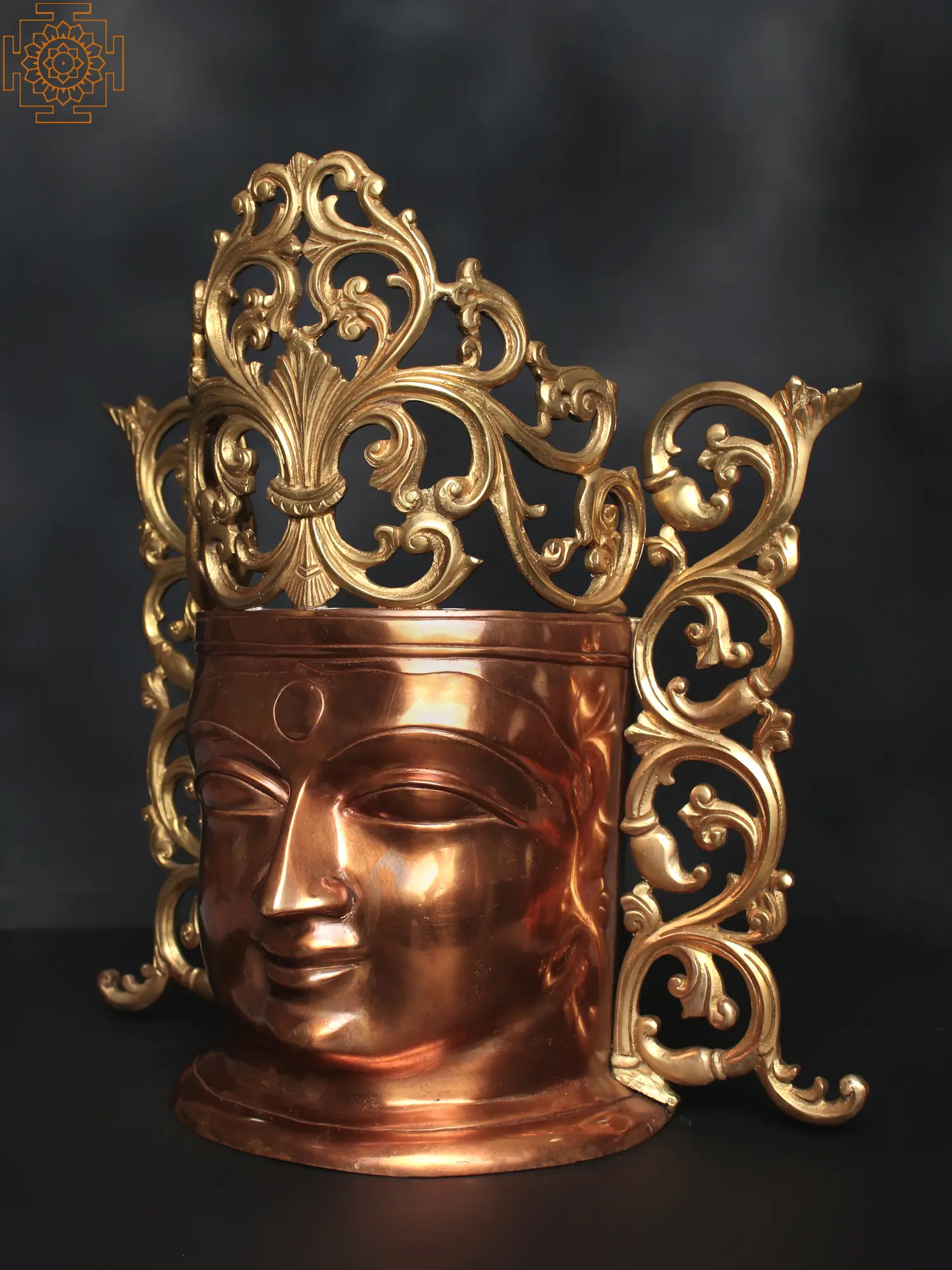 Welcome the majesty and beauty of the great goddess in your home aesthetics, with this pure brass handmade artwork, inspired by the splendor of Devi Parvati. The glorious countenance of the goddess is delineated perfectly, adorned by bustling vines which represent the origination of life, at whose root is the benevolence of the Adi Shakti.