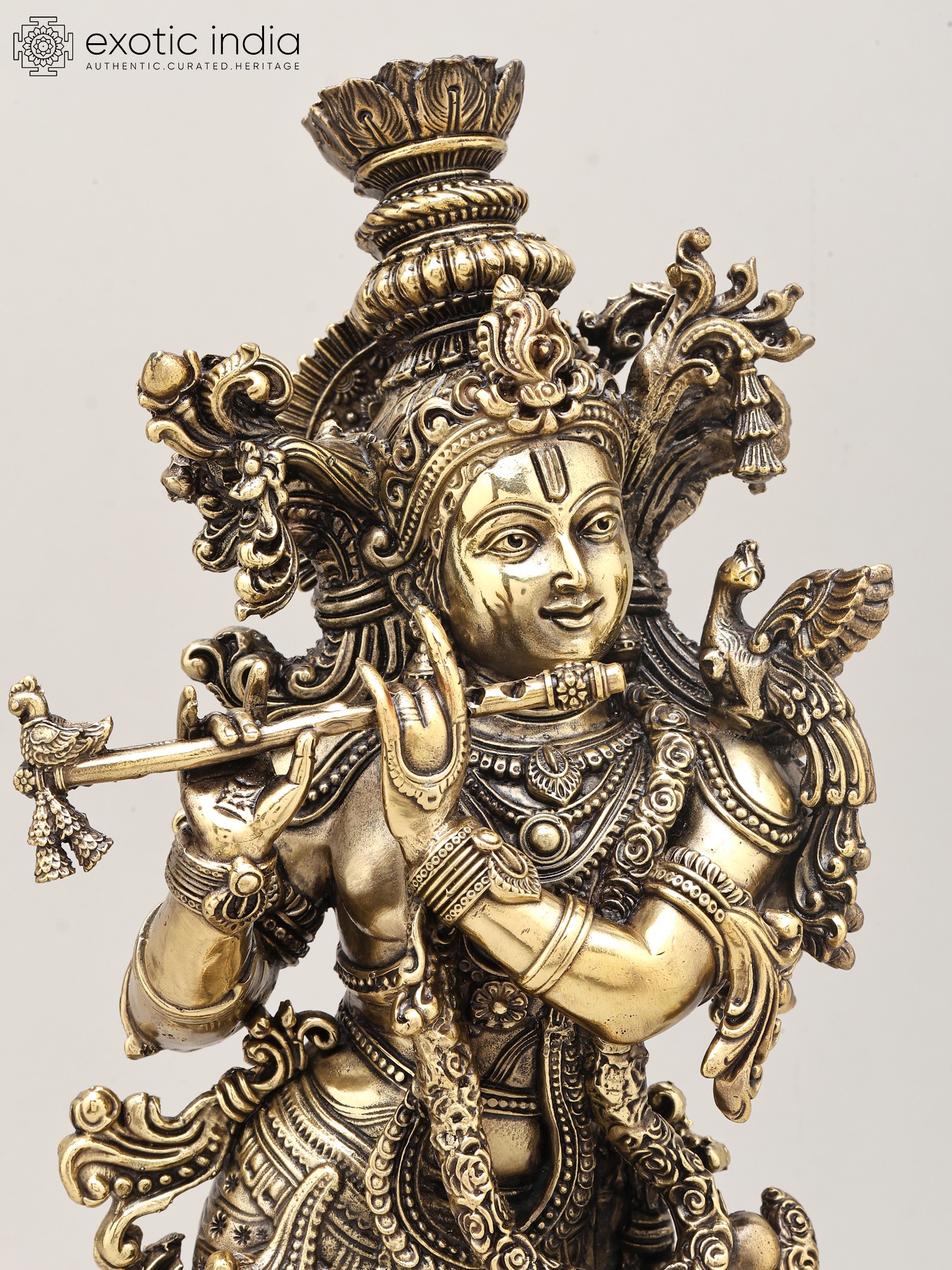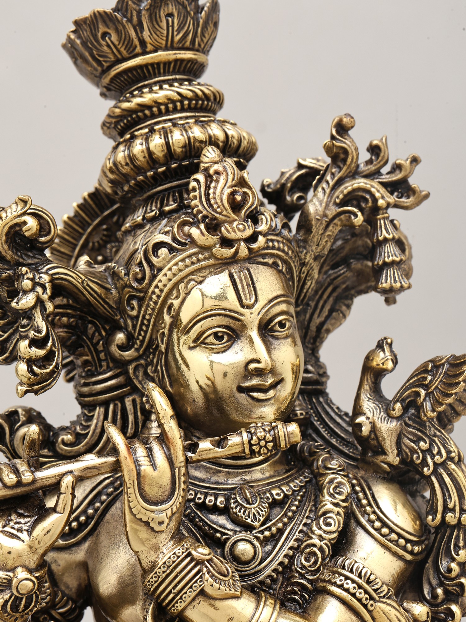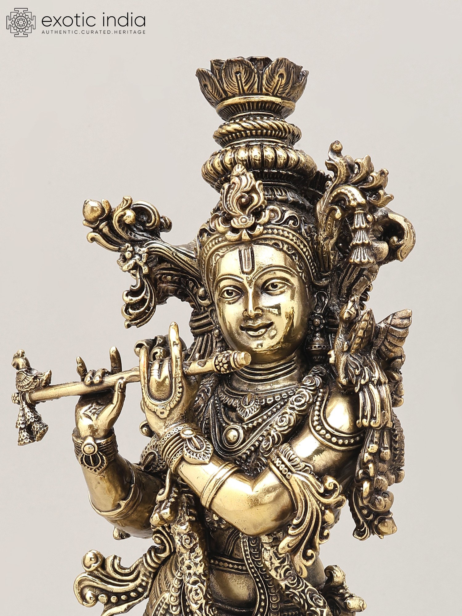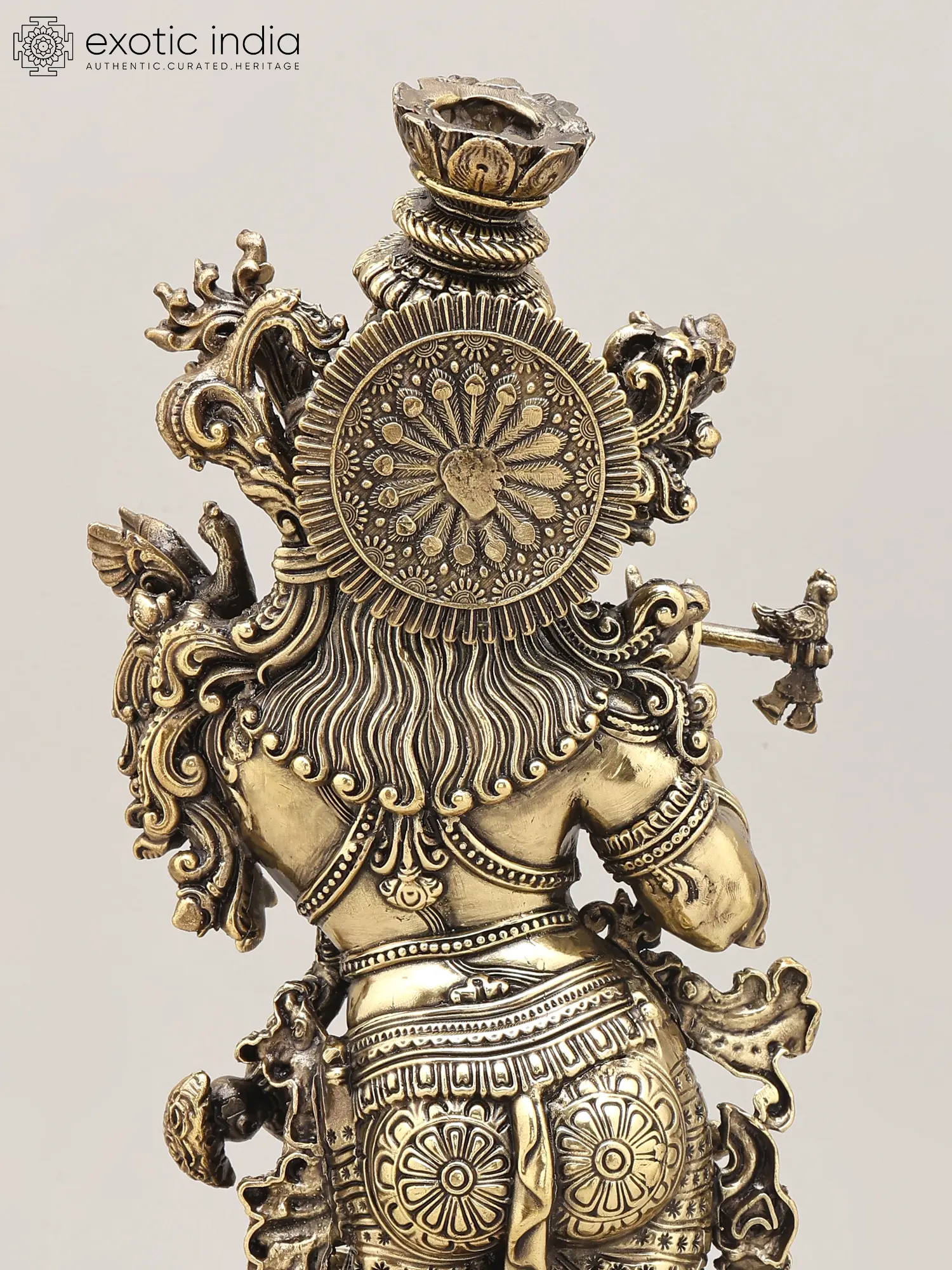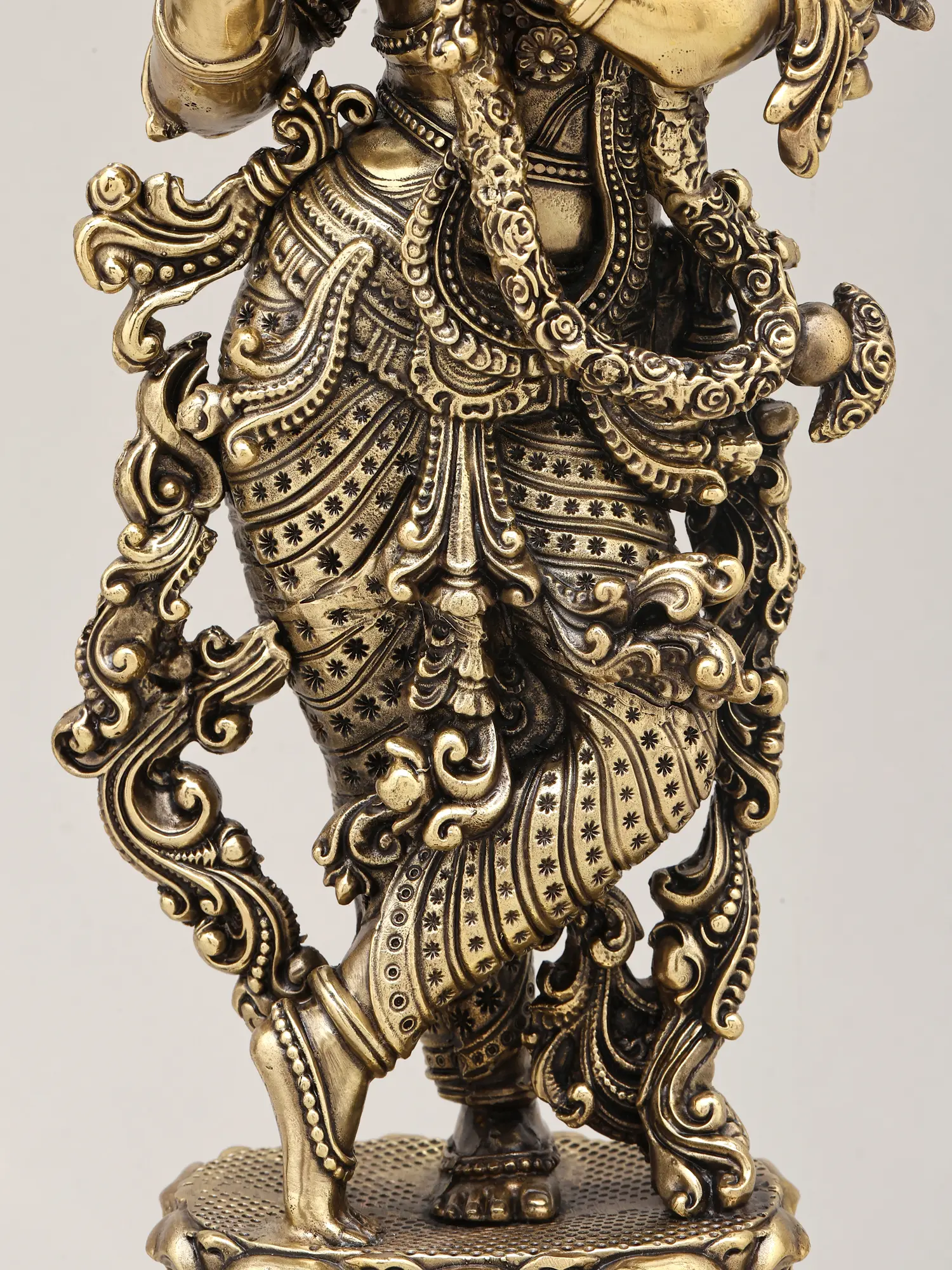 13" Lord Krishna Playing Flute In Brass | Handmade | Made In India