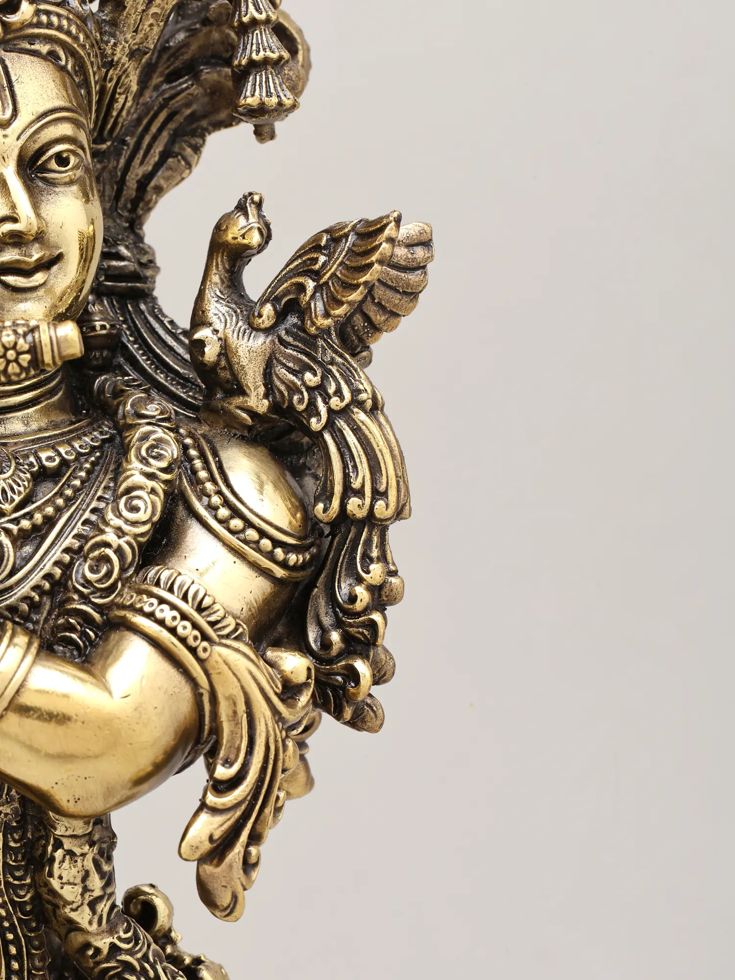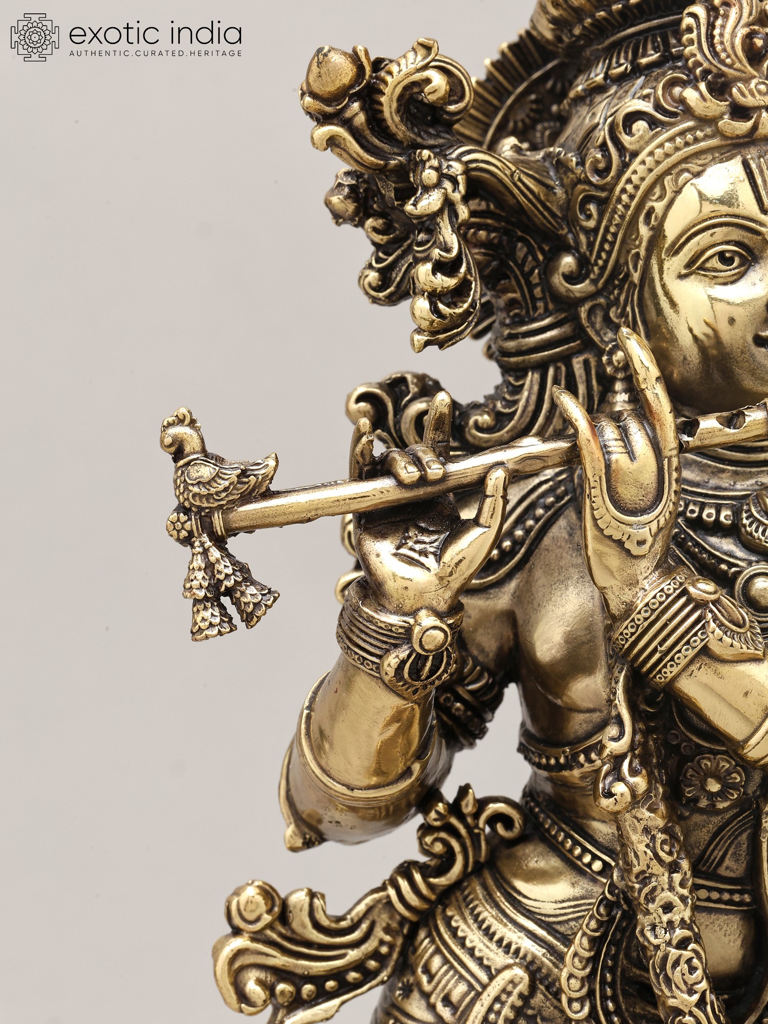 12" Superfine Lord Krishna Playing Flute | Brass Statue with Inlay Work