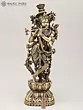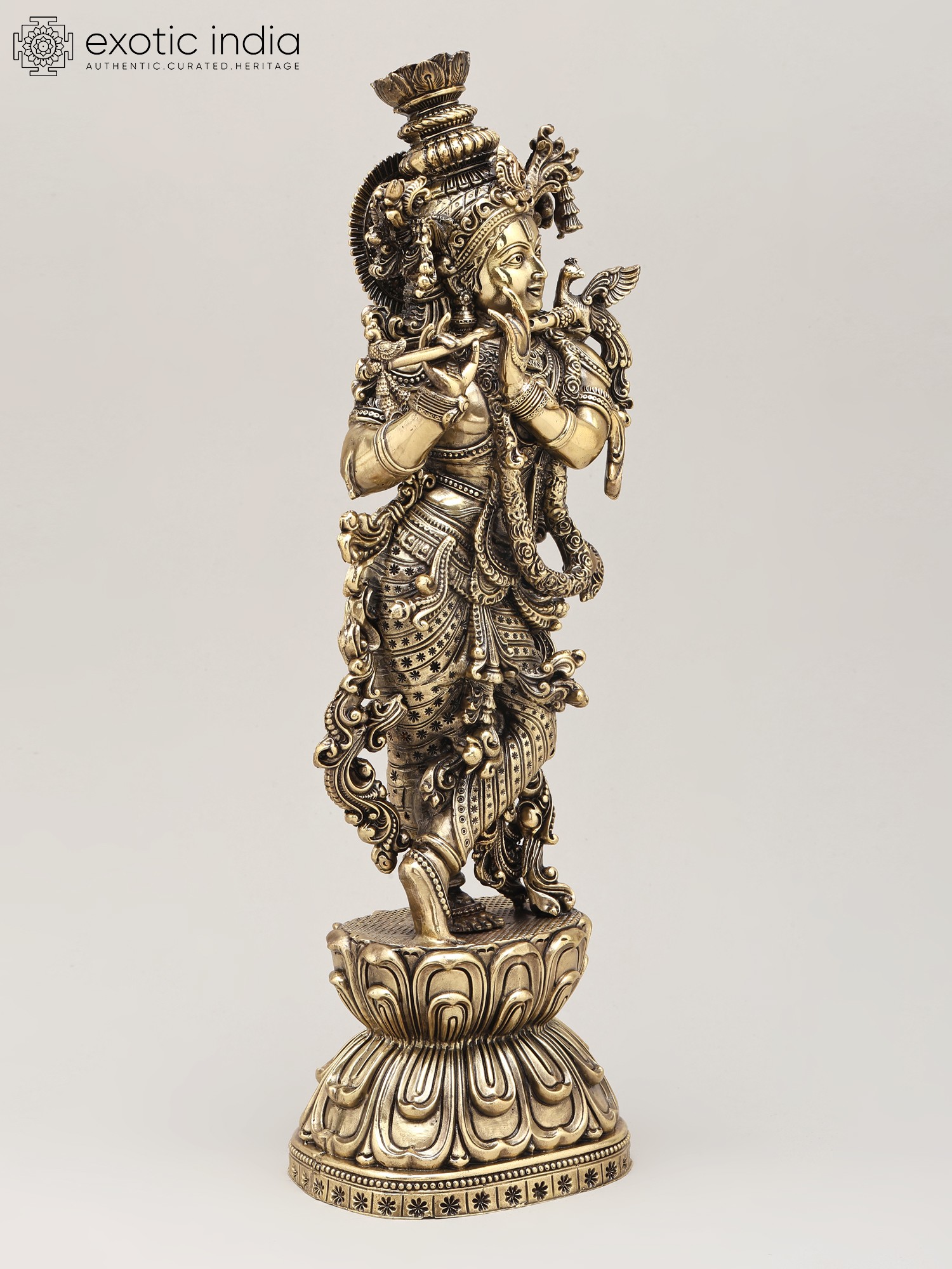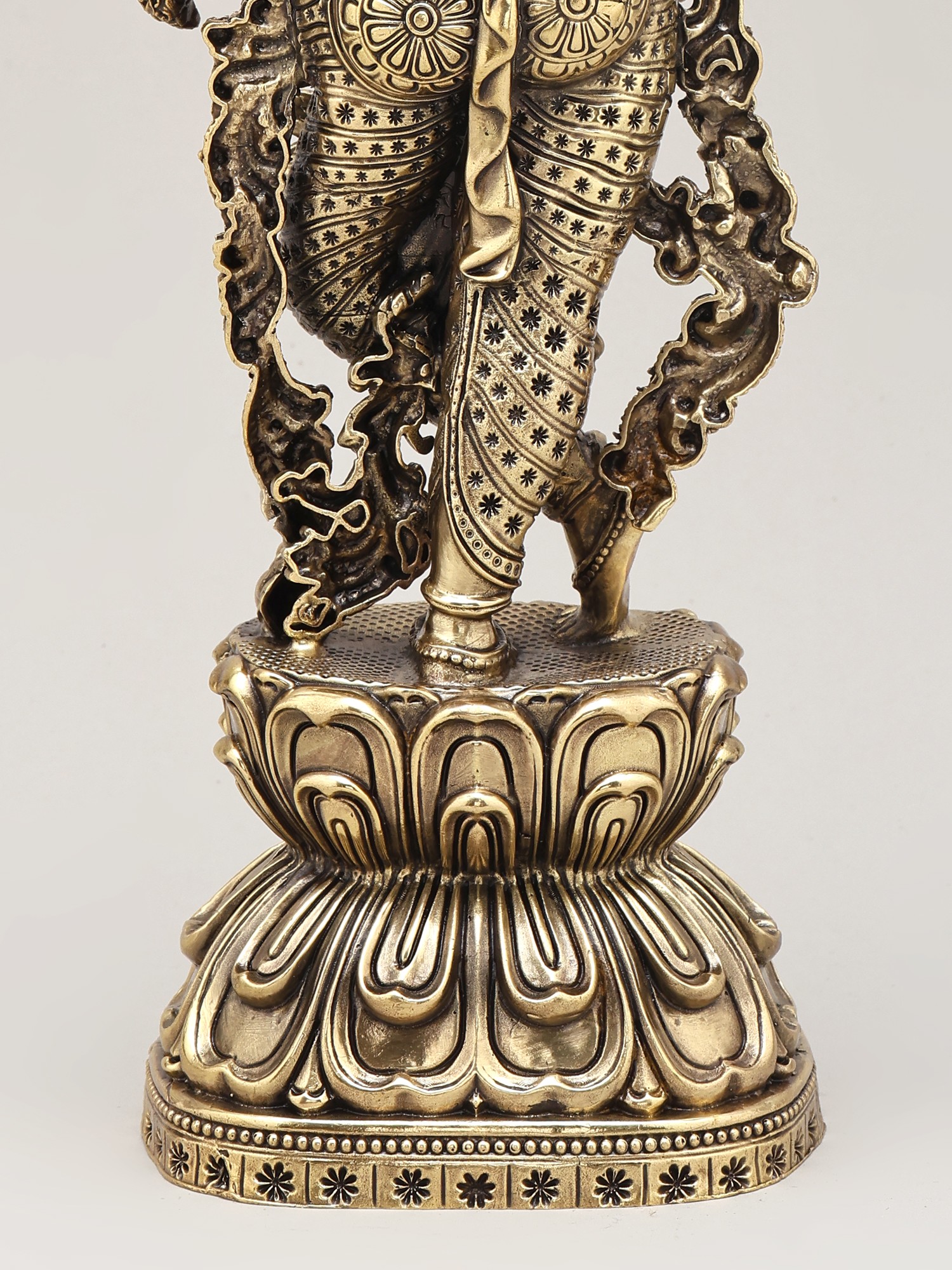 17" Brass Lord Krishna Playing Flute on Lotus Pedestal