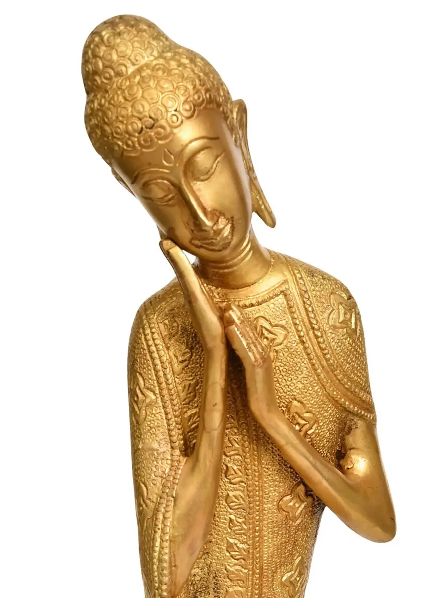 Delve into the contemplative world of the Thinking Buddha with this handcrafted brass sculpture, made with care in India. The Thinking Buddha, in Buddhist philosophy, represents deep introspection and mindfulness. This sculpture's serene expression and the posture of deep thought symbolise the journey within. It is a bestseller, perfect for those seeking spiritual growth and self-reflection. Enhance your meditation space with the presence of the Thinking Buddha, guiding you on your path to inner peace and enlightenment.