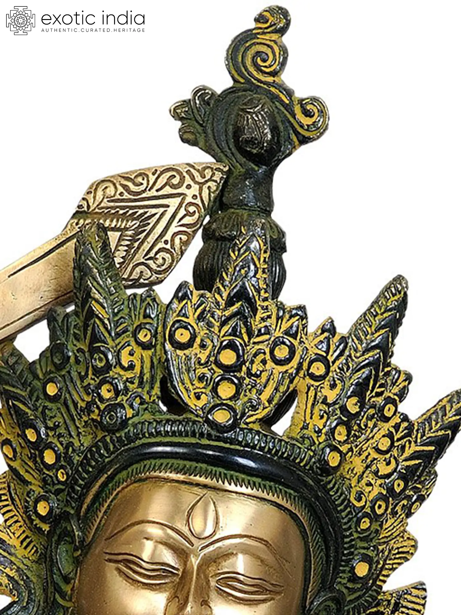 This exquisite brass statue depicts Manjushri, the Bodhisattva of Transcendent Wisdom, a revered figure in Mahayana Buddhism. With a commanding presence and intricate detailing, this sculpture embodies the profound teachings and divine attributes of this important deity. Manjushri is often invoked to cut through ignorance and illusion, illuminating the path to enlightenment with the sharp edge of wisdom. His presence is said to bestow clarity of thought, sharp intellect, and profound understanding upon his devotees. In Buddhist lore, Manjushri is often depicted as a young, radiant prince, symbolizing the purity and boundless potential of youthful wisdom. He is frequently shown riding a lion, representing the taming of the wild mind, or seated on a lotus, signifying spiritual purity. Here, he is rendered in a serene yet powerful posture, seated in meditative grace, his gaze serene and all-knowing. The craftsmanship of this piece is a testament to the rich artistic heritage of India, where tradition and spirituality are interwoven into every creation. –––––––––––––––––––