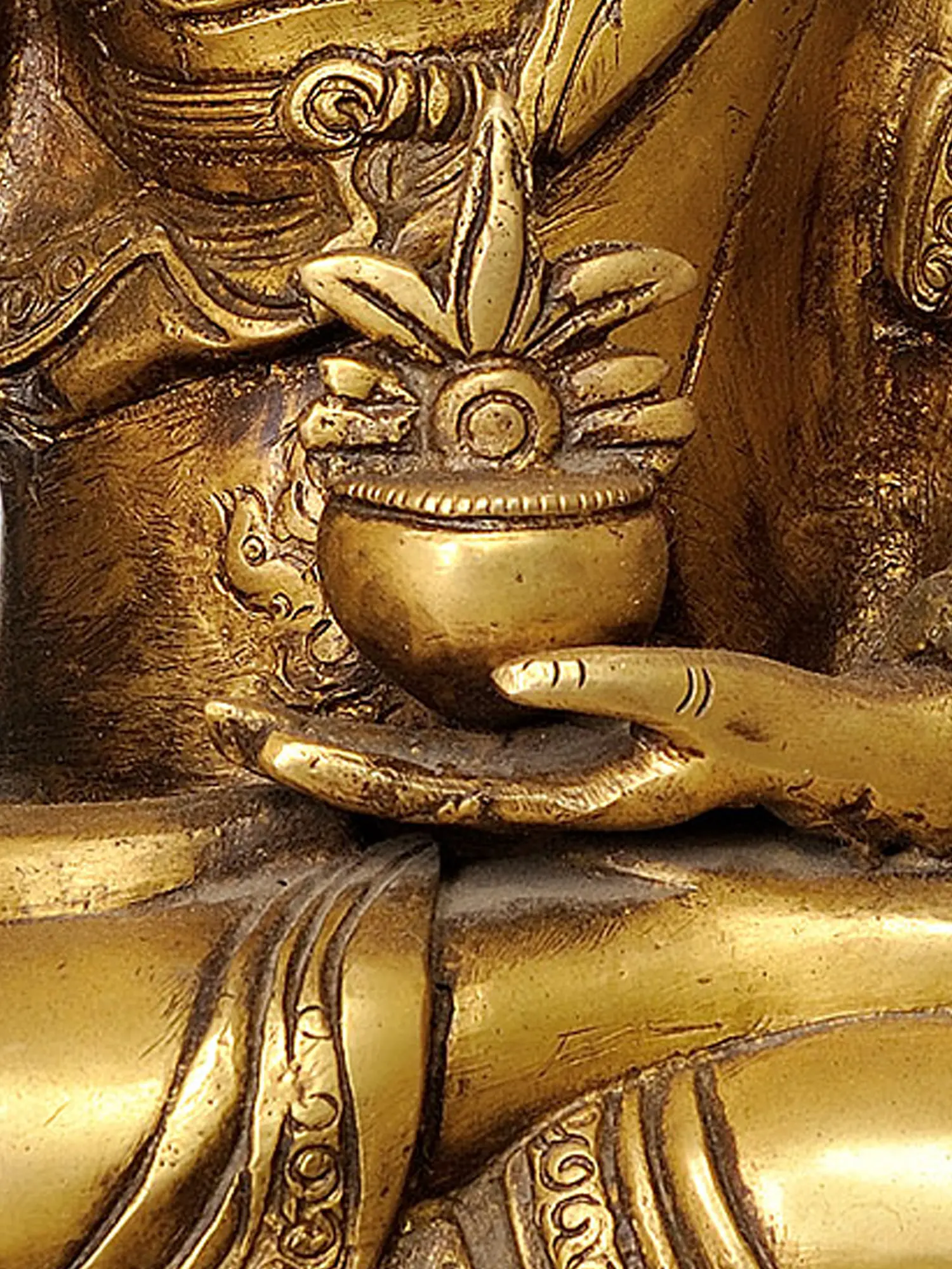 15" Tibetan Buddhist Deity Medicine Buddha (Robes Decorated with Auspicious Symbols) In Brass | Handmade | Made In India
