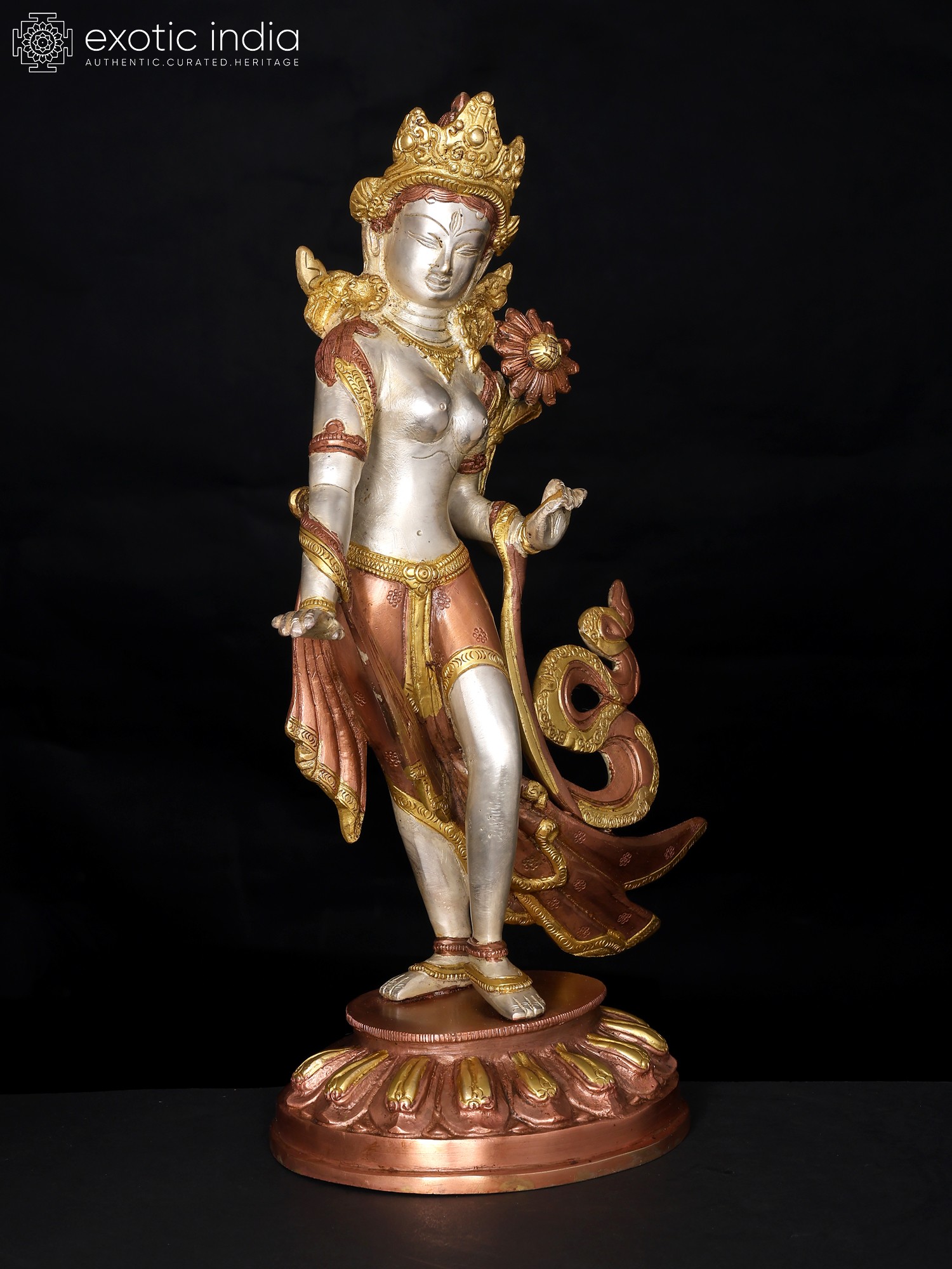 15" Tibetan Buddhist Standing Tara In Brass | Handmade | Made In India