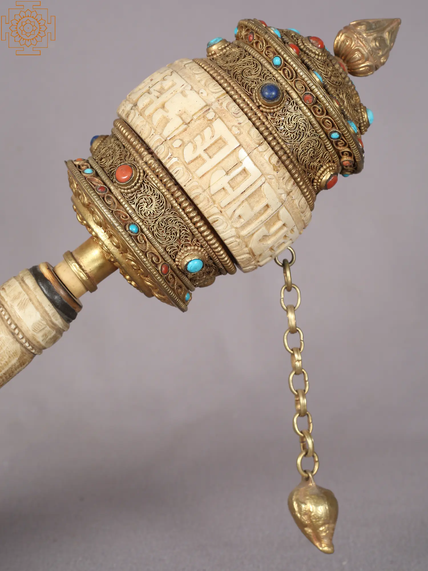 The Tibetan Prayer Wheel, also known as the Mani Wheel, is a profound embodiment of spiritual devotion and ritual practice. Crafted with intricate craftsmanship, the cylindrical wheel is adorned with sacred mantras or prayers. Rotating the wheel is believed to invoke the blessings and benefits of reciting these sacred texts. As the wheel turns, it symbolizes the continuous flow of positive energy and intentions into the universe.