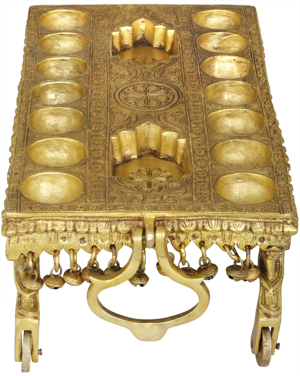 15" Traditional South Indian Game Pallanguzhi Brass Board with Wheels | Handmade Brass Statue