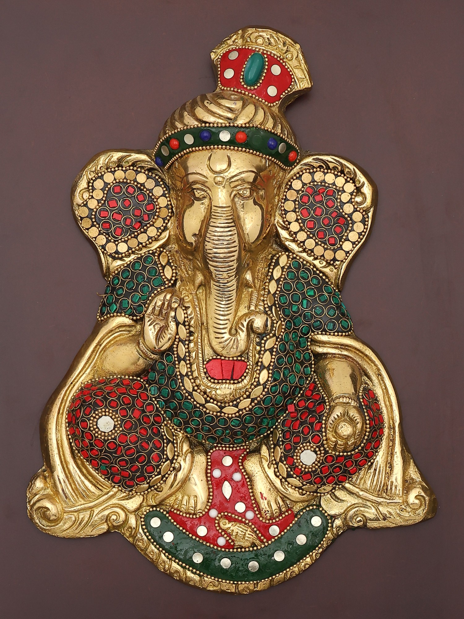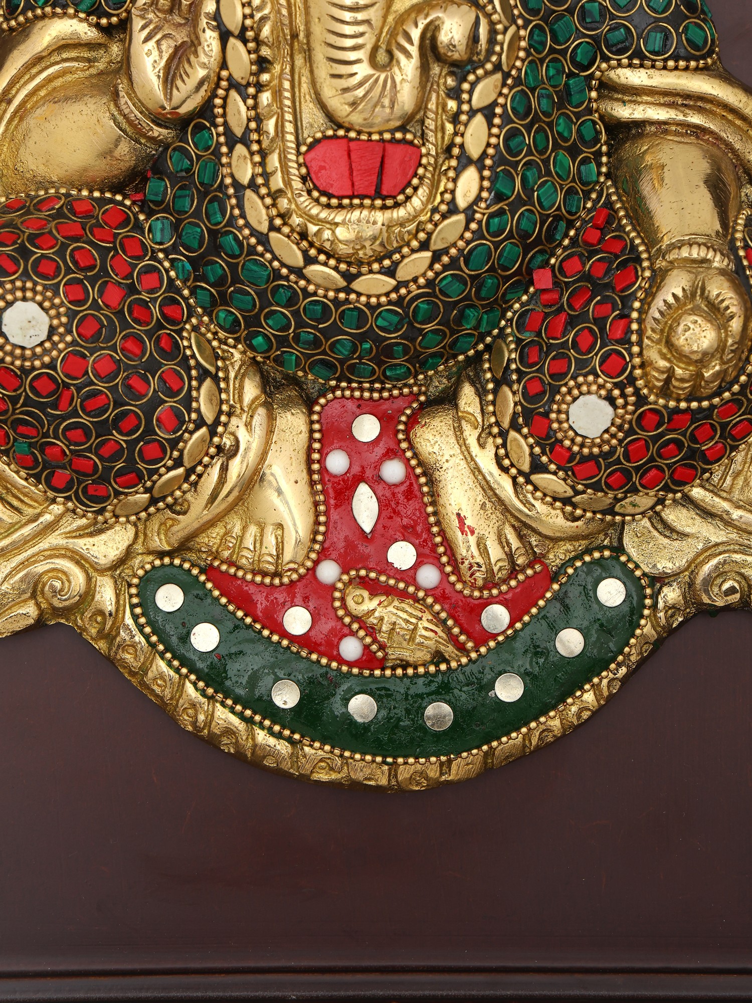 16" Wood Framed Lord Ganesha Wall Hanging Statue in Brass
