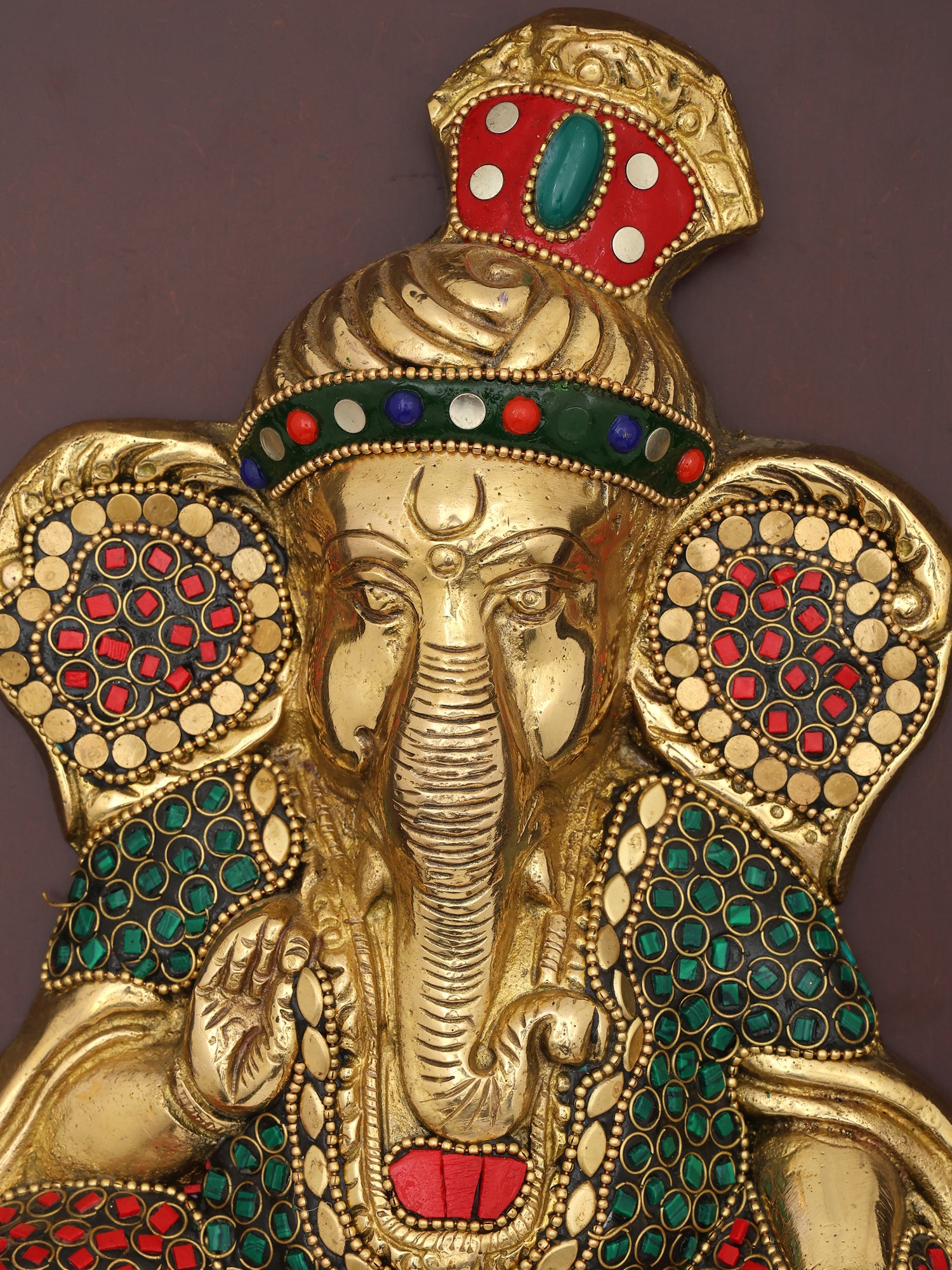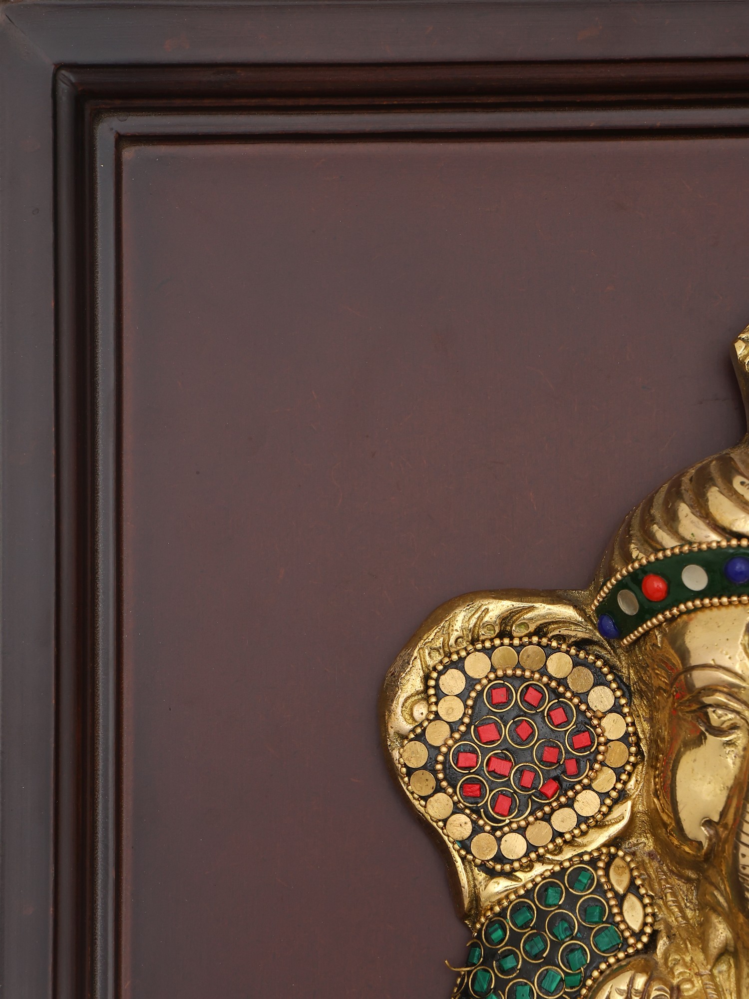 13" Wooden Framed Brass Lord Ganesha | Wall Hanging