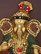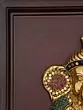 This piece offers a captivating portrayal of Ganesha, meticulously crafted from brass and set against a rich wooden backdrop. The brass figure showcases remarkable detail, with careful attention paid to Ganesha's iconic features. The subtle, yet intricate inlay work further enhances the sculpture, adding depth and visual interest. The use of color lends a vibrant energy to the piece, drawing the eye and highlighting the deity’s auspicious presence. The dark, wooden frame provides a contrasting canvas that complements the golden hues of the brass sculpture, ensuring that the Ganesha figure remains the focal point. This wall hanging artfully combines traditional craftsmanship with aesthetic sensibilities, offering a striking representation of a beloved deity. It serves not just as a decorative element but as a tangible symbol of faith and a celebration of Indian artistic heritage. Perfect for adding a touch of spirituality and cultural richness to any home or office setting.