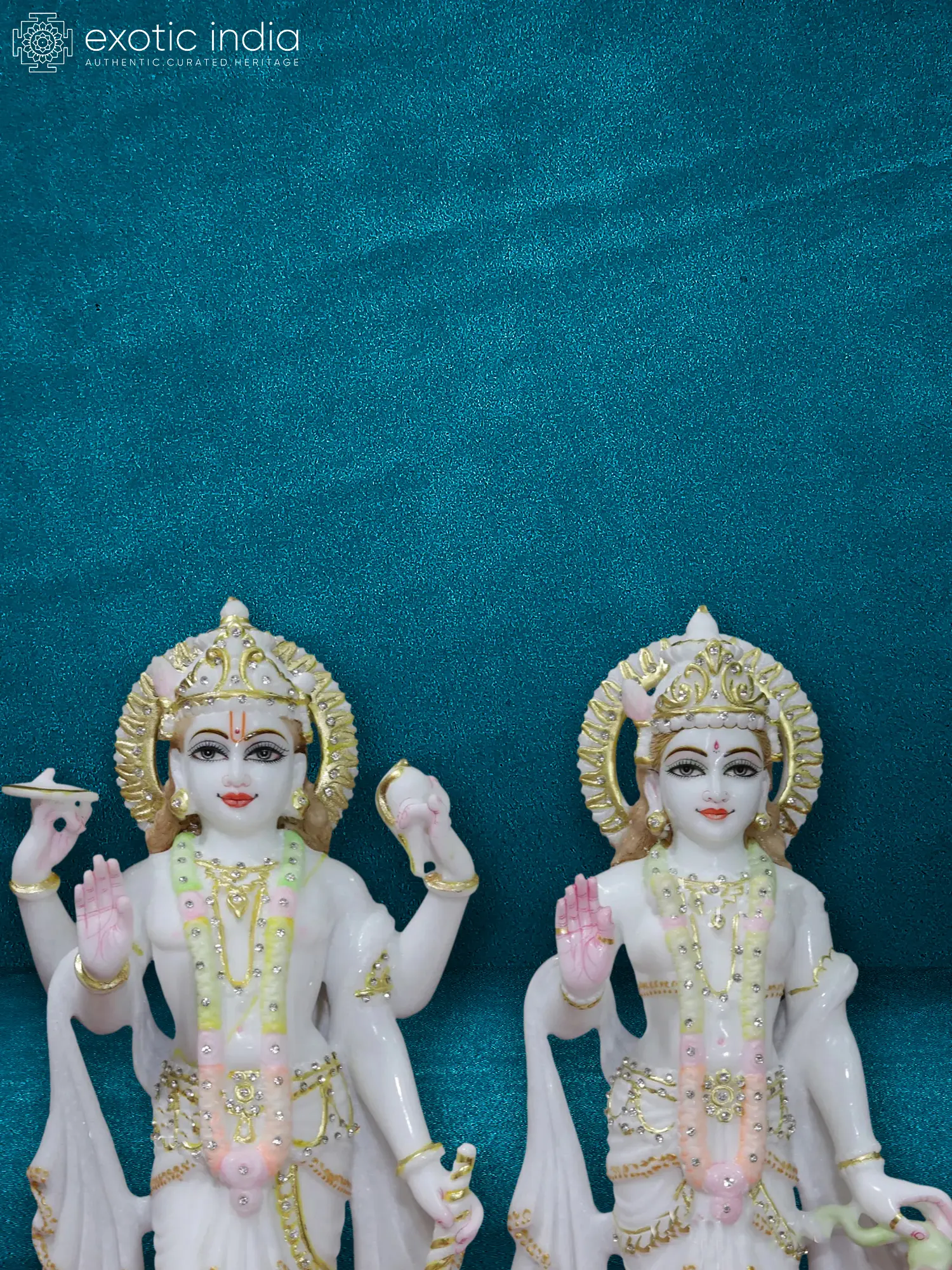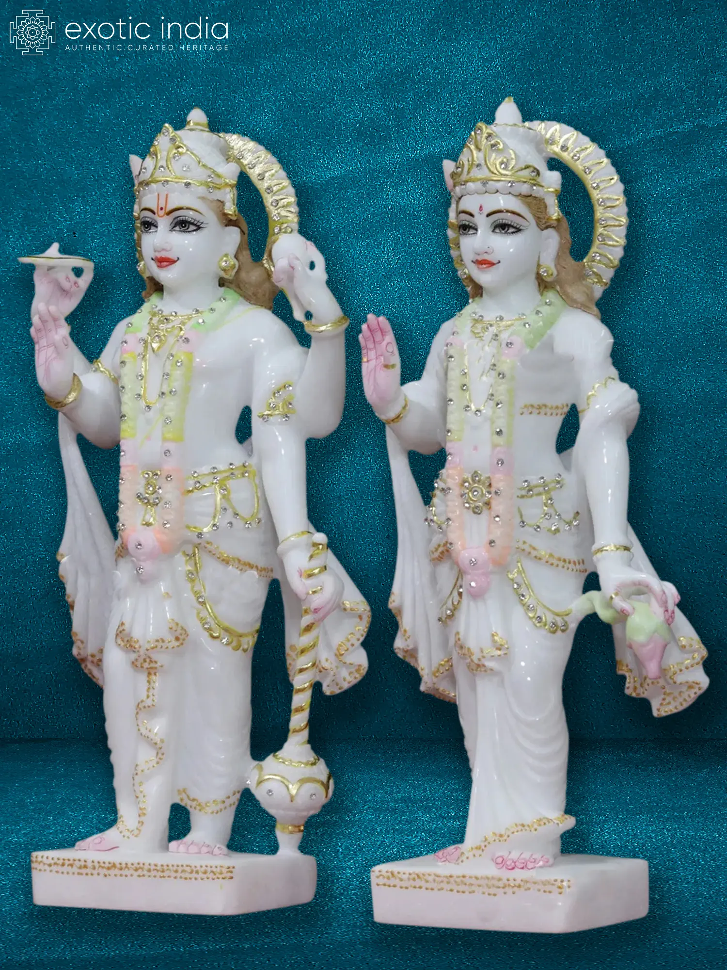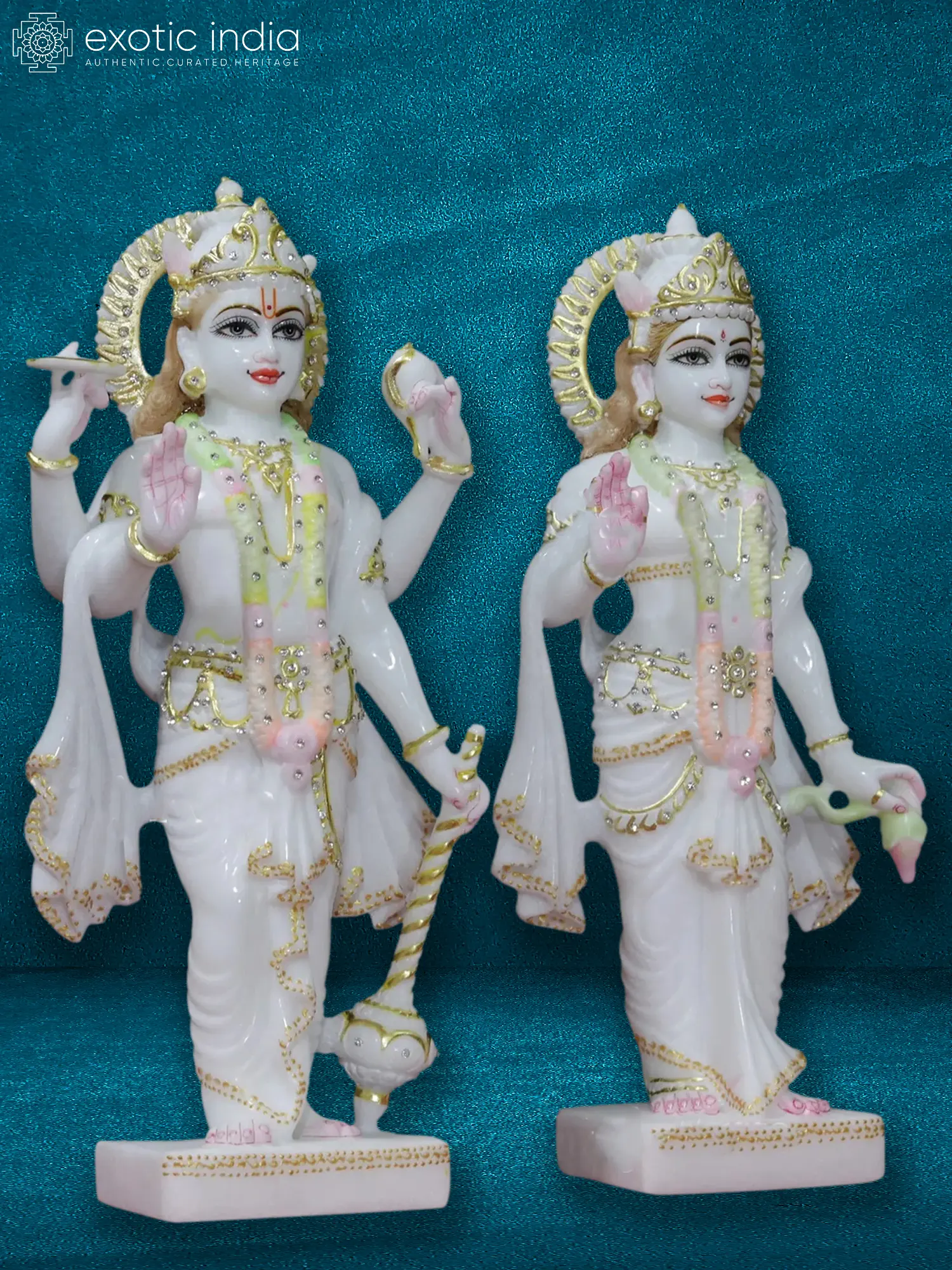 24" Lord Vishnu With Goddess Lakshmi Seated On Lotus Throne In Vietnam Marble | Statue For Temple