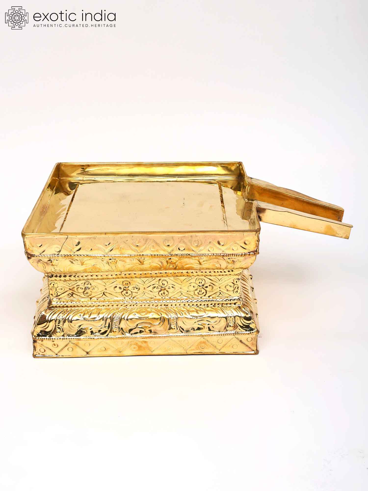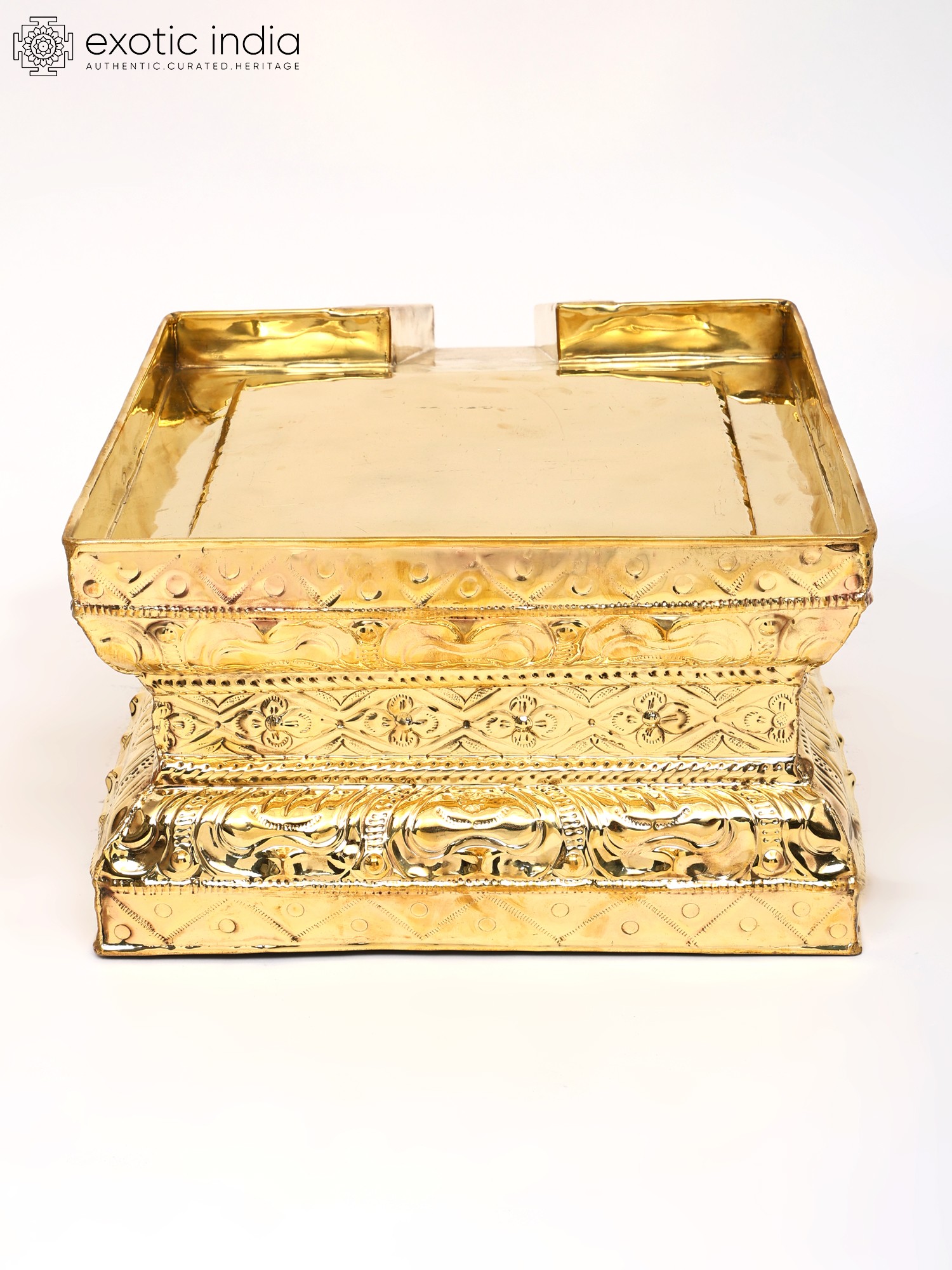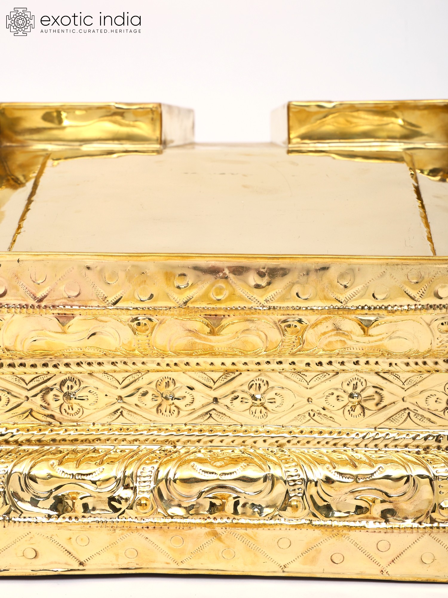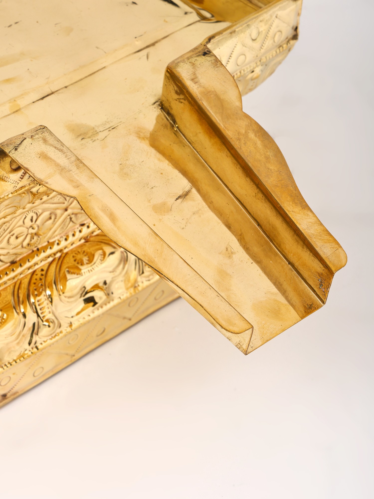 24" Lakshmi Ganesha Saraswati with Diya | Wood Framed Brass Sculpture | Wall Hanging