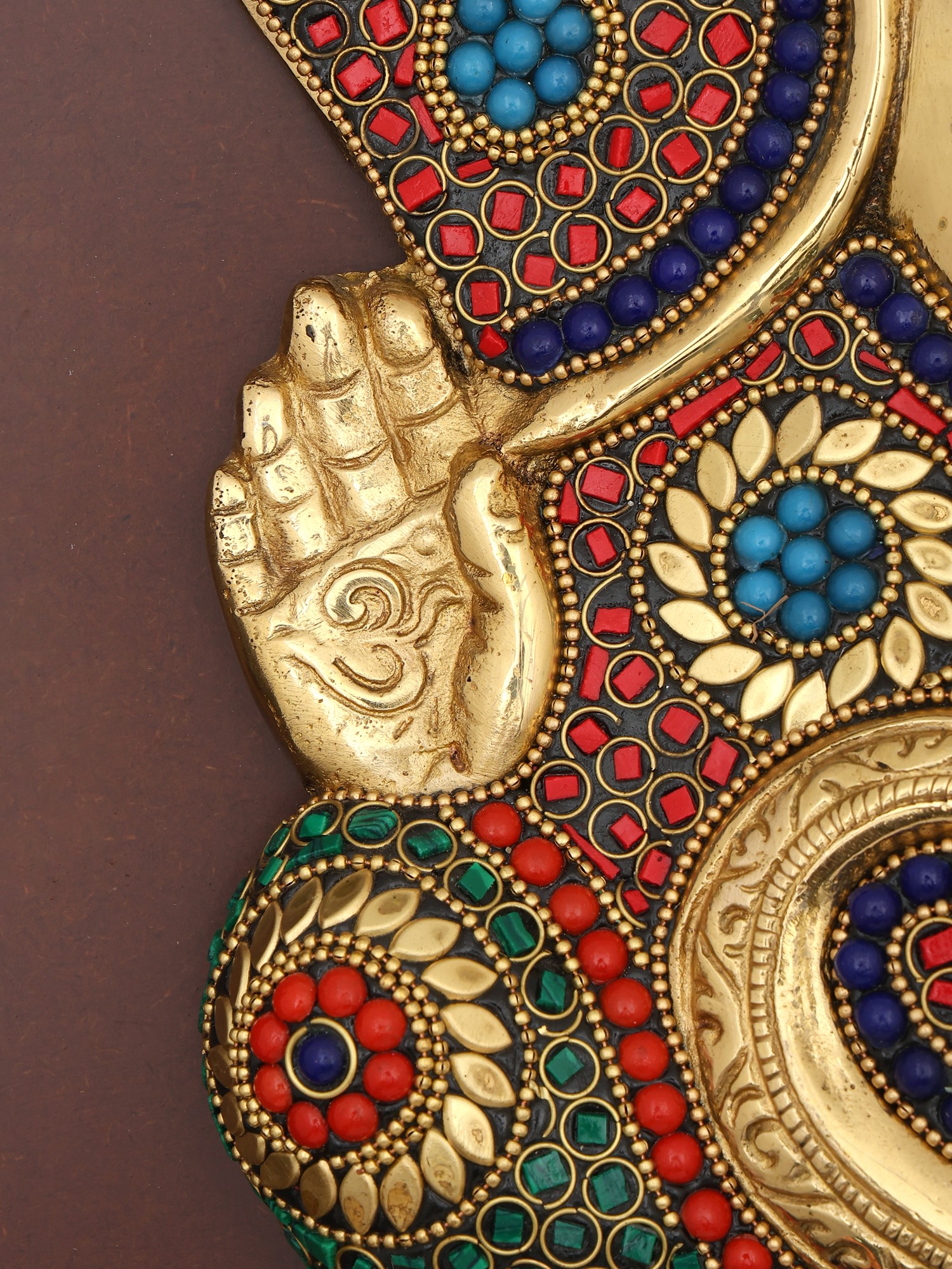 16" Om (Aum) Ganesha | Wood Framed Brass Sculpture | Wall Hanging