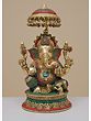 16" Brass King Ganesha with Inlay Work | Handmade