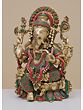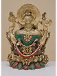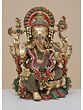 16" Brass Lord Ganesha Seated on Lotus with Inlay Work | Handmade