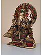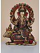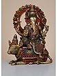 16" Brass Lord Ganesha Sitting on Rat with Inlay Work | Handmade