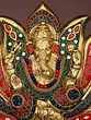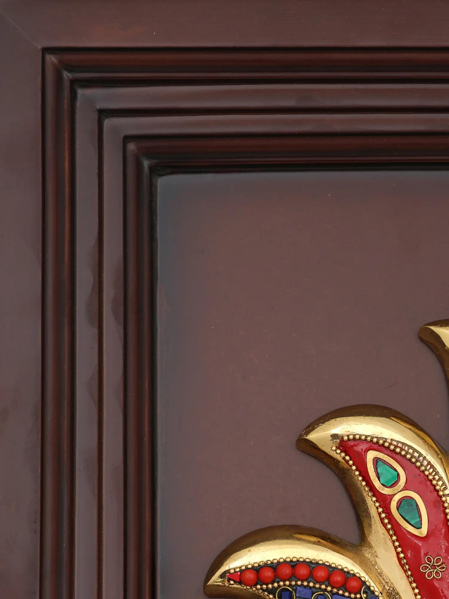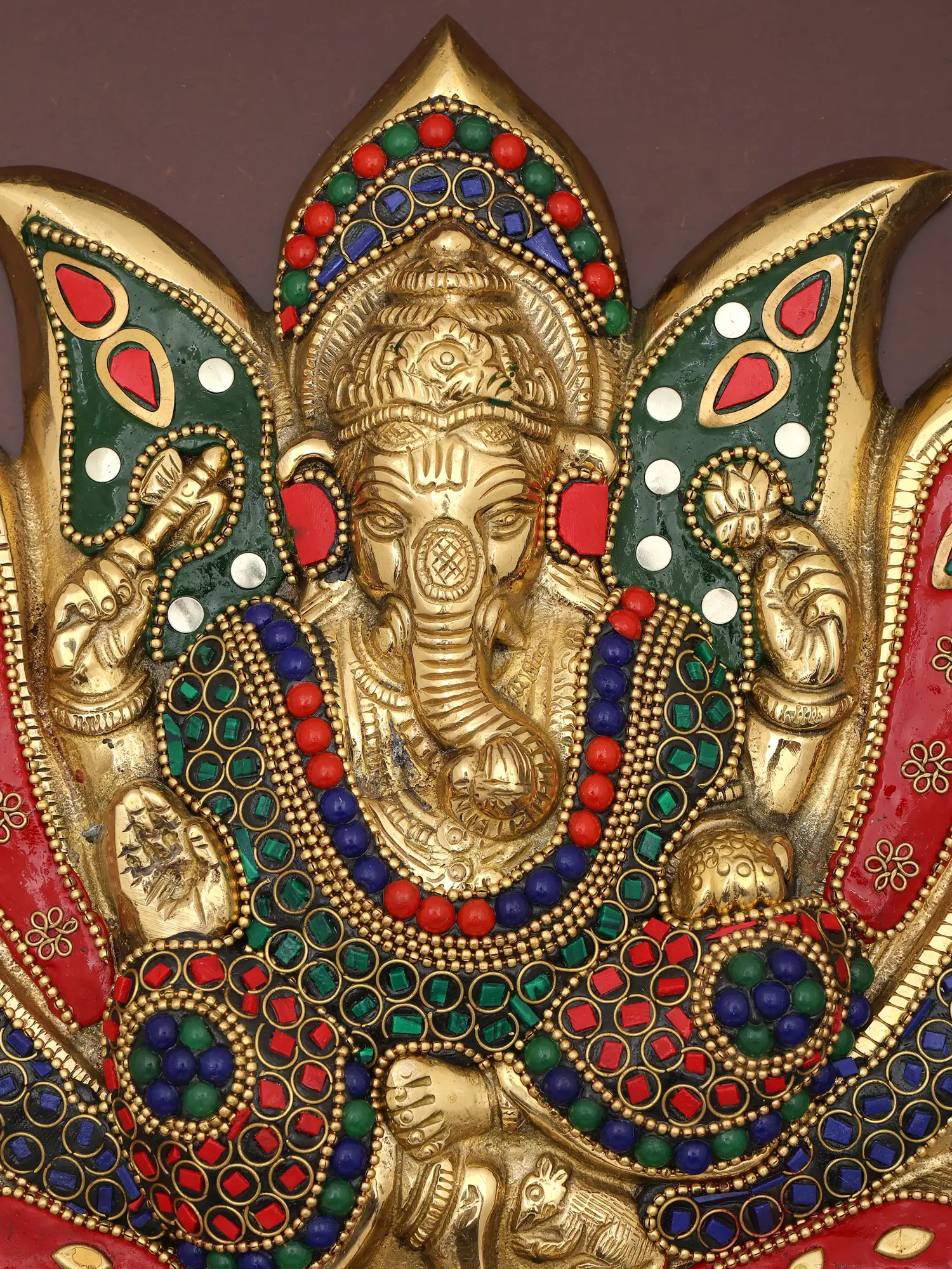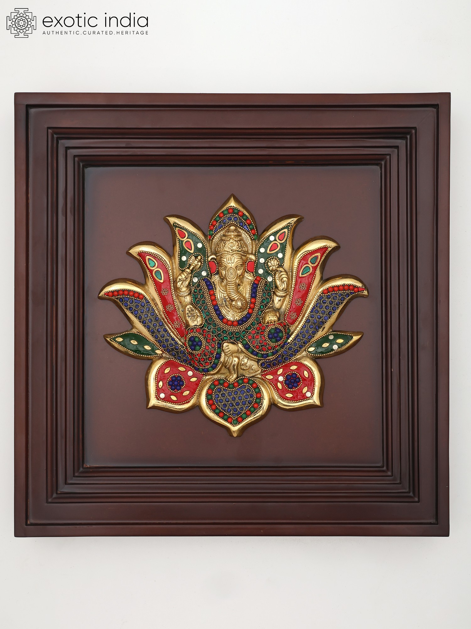 15" Stylized Lord Ganesha | Wood Framed Brass Sculpture | Wall Hanging