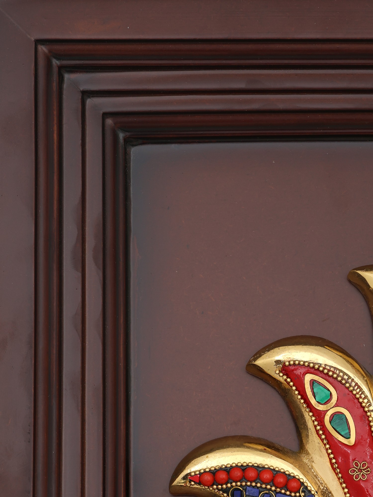 16" Om (Aum) Ganesha | Wood Framed Brass Sculpture | Wall Hanging