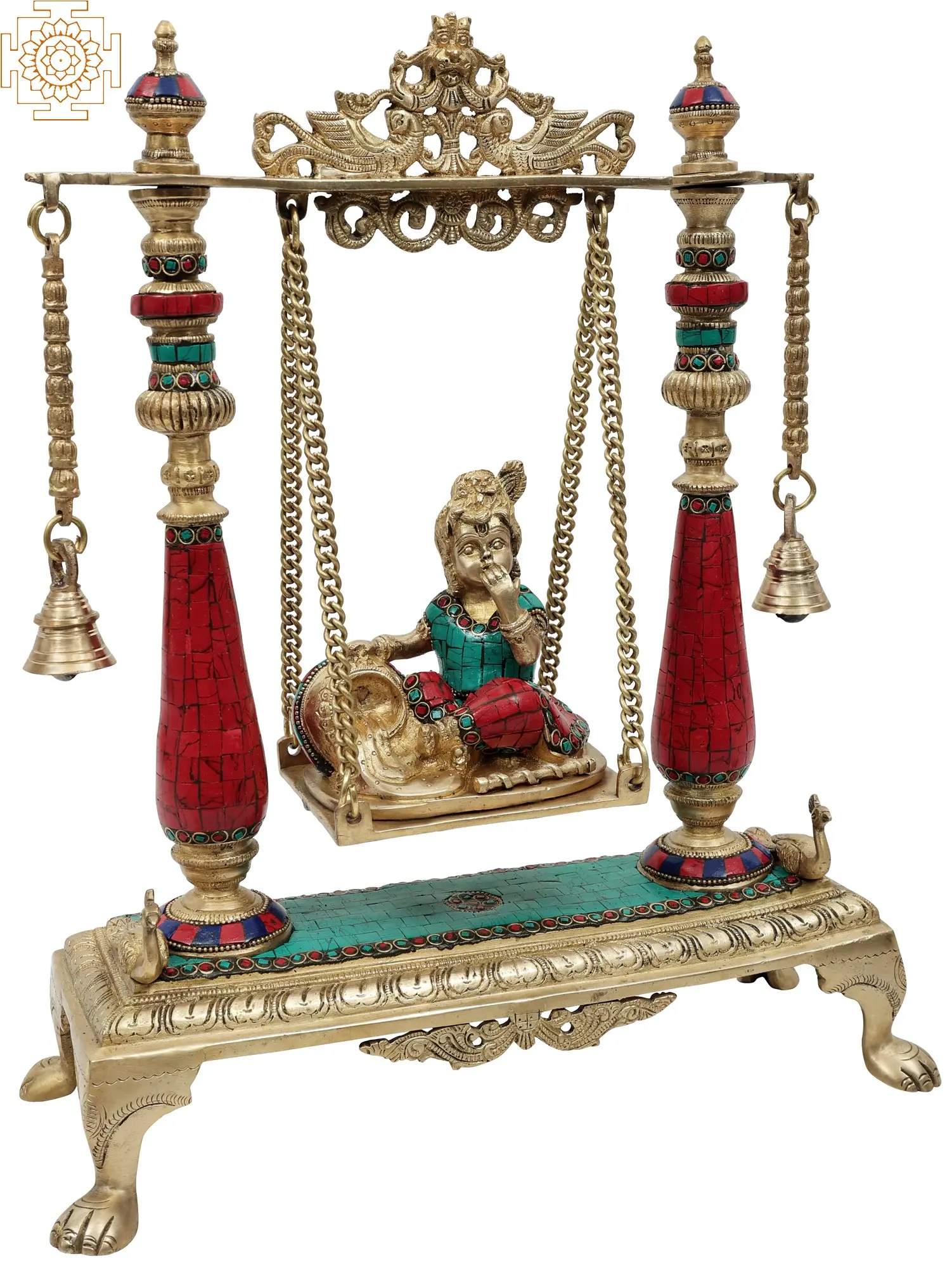 Immerse yourself in the playful and charming aspect of Lord Krishna with our delightful brass sculpture. Handmade with love in India, this artwork captures the youthful and mischievous Krishna, symbolising the carefree philosophy of living in the moment. As you explore this sculpture, you'll be enchanted by Krishna's joyful posture, the intricate swing, and the symbolism of the butter pot, representing his love for the simple pleasures of life. The craftsmanship reflects the cultural richness and the importance of experiencing joy in everyday moments.