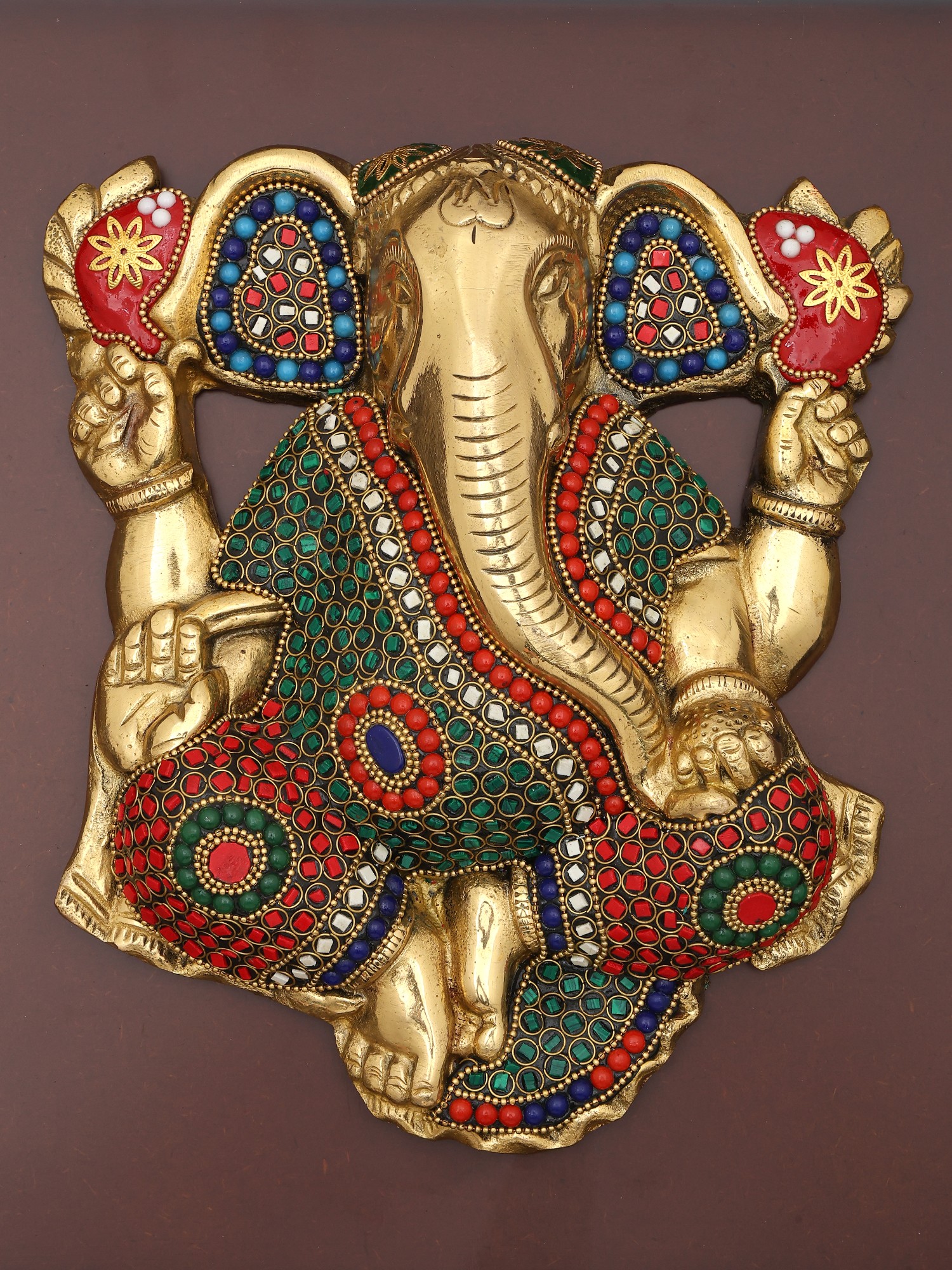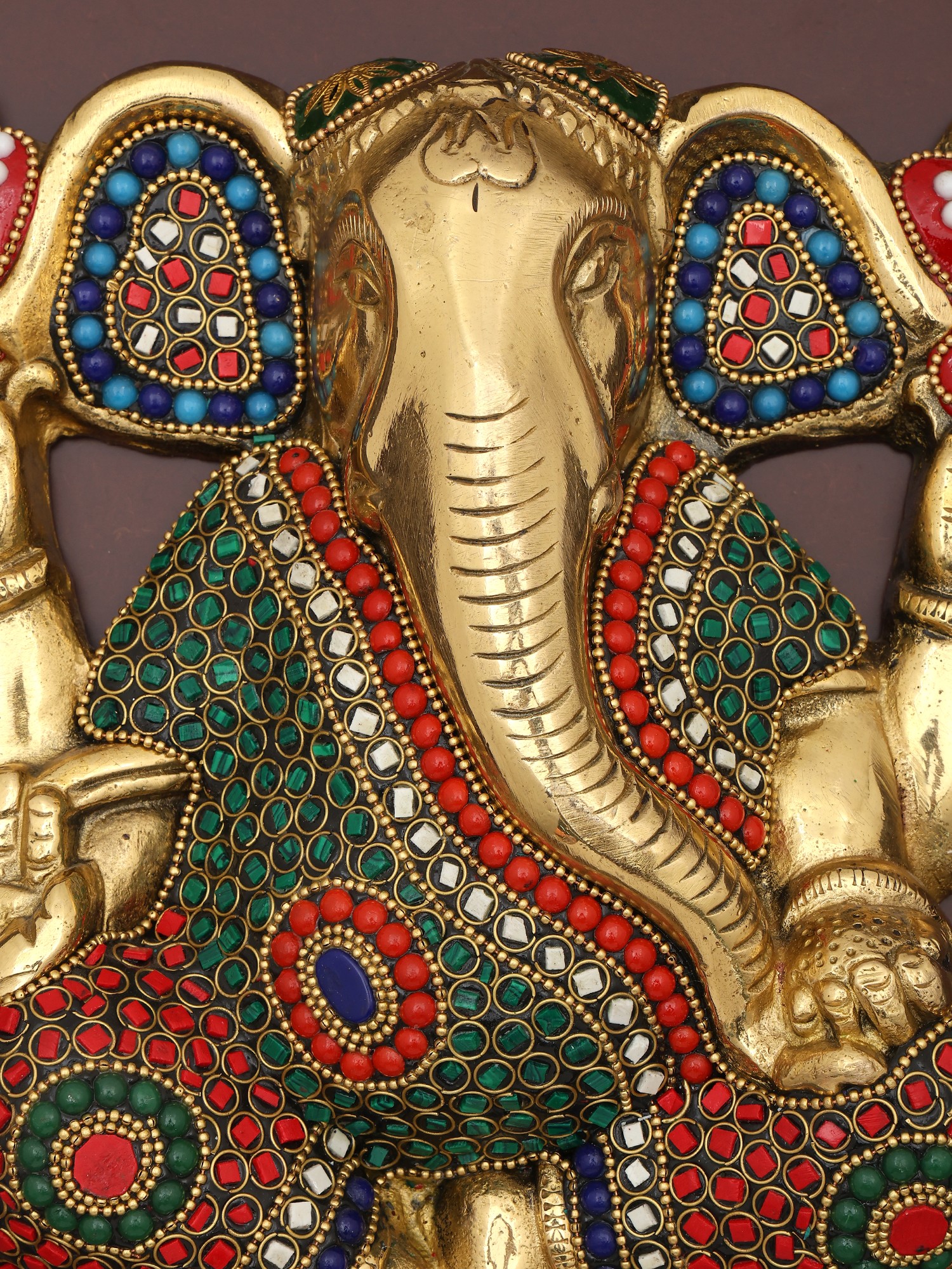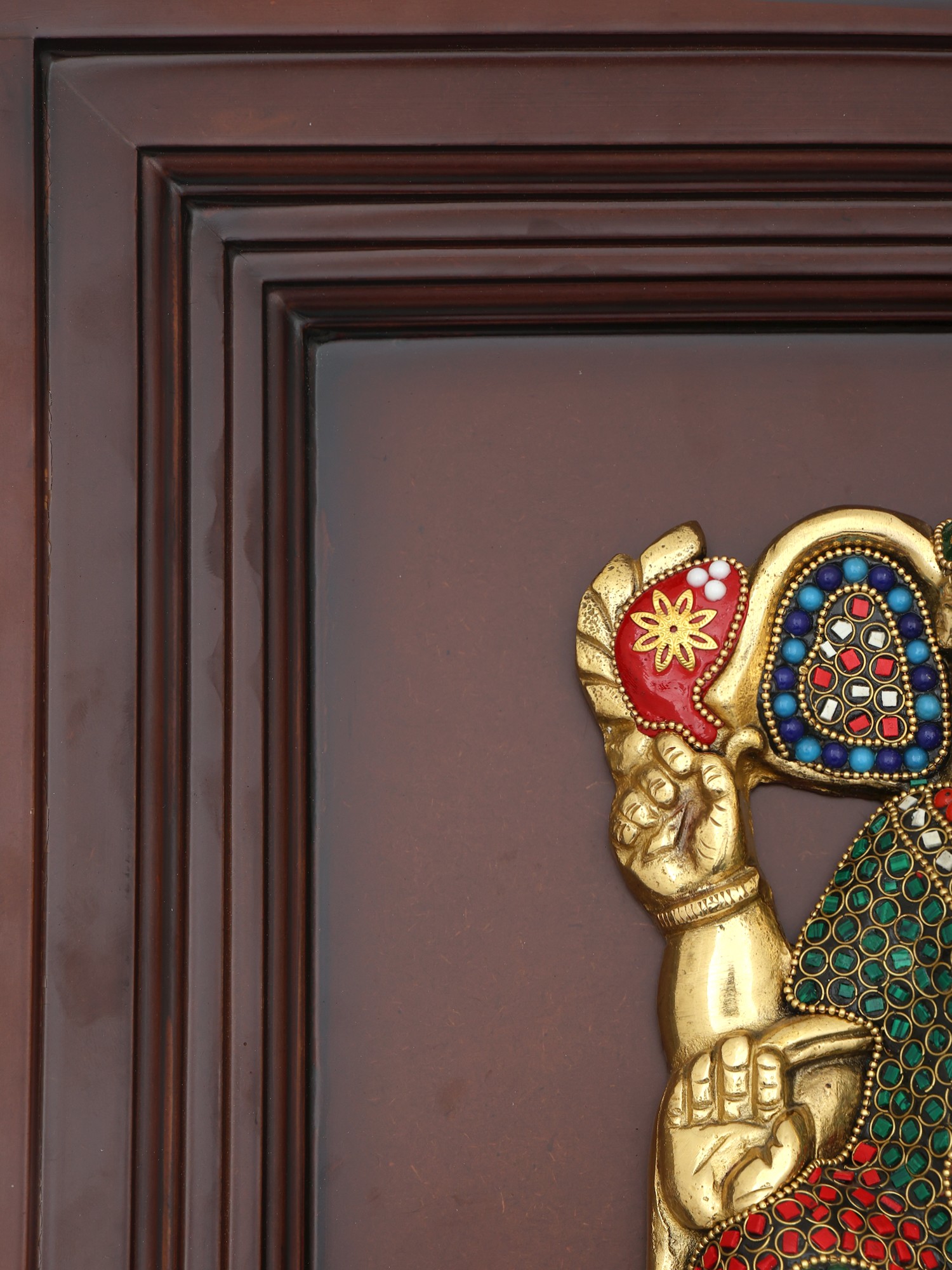 13" Wooden Framed Brass Lord Ganesha | Wall Hanging