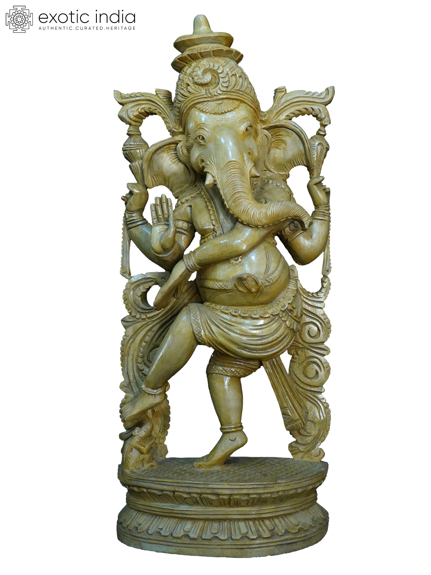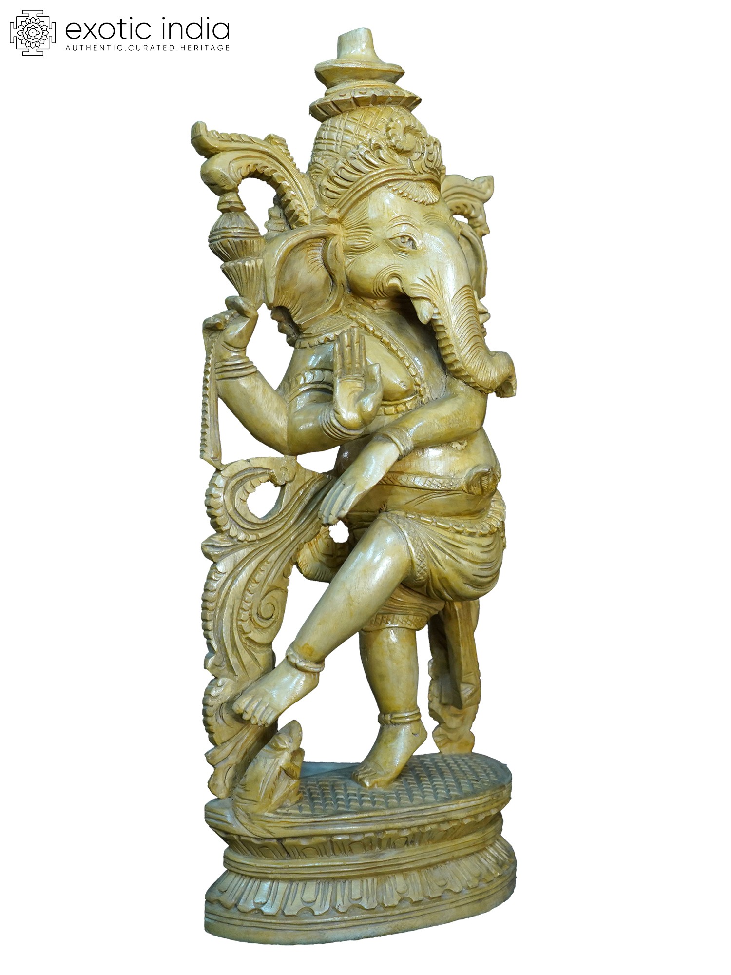 96" Huge Panchmukhi Lord Ganesha Wooden Statue | South Indian Temple Wood Carving