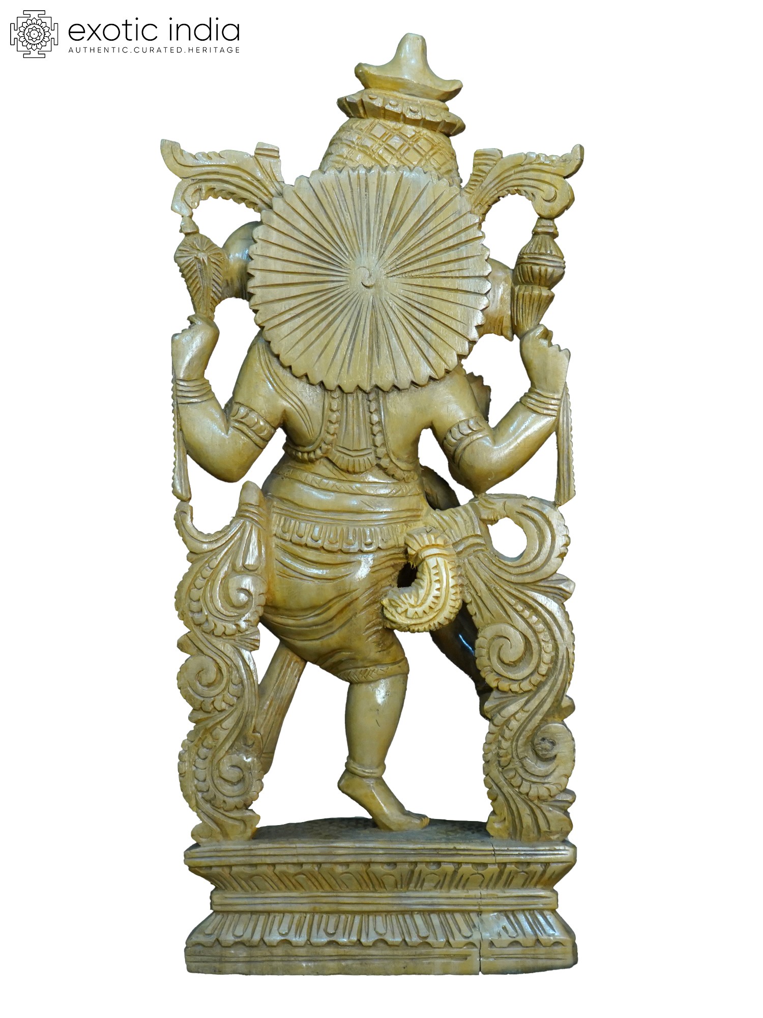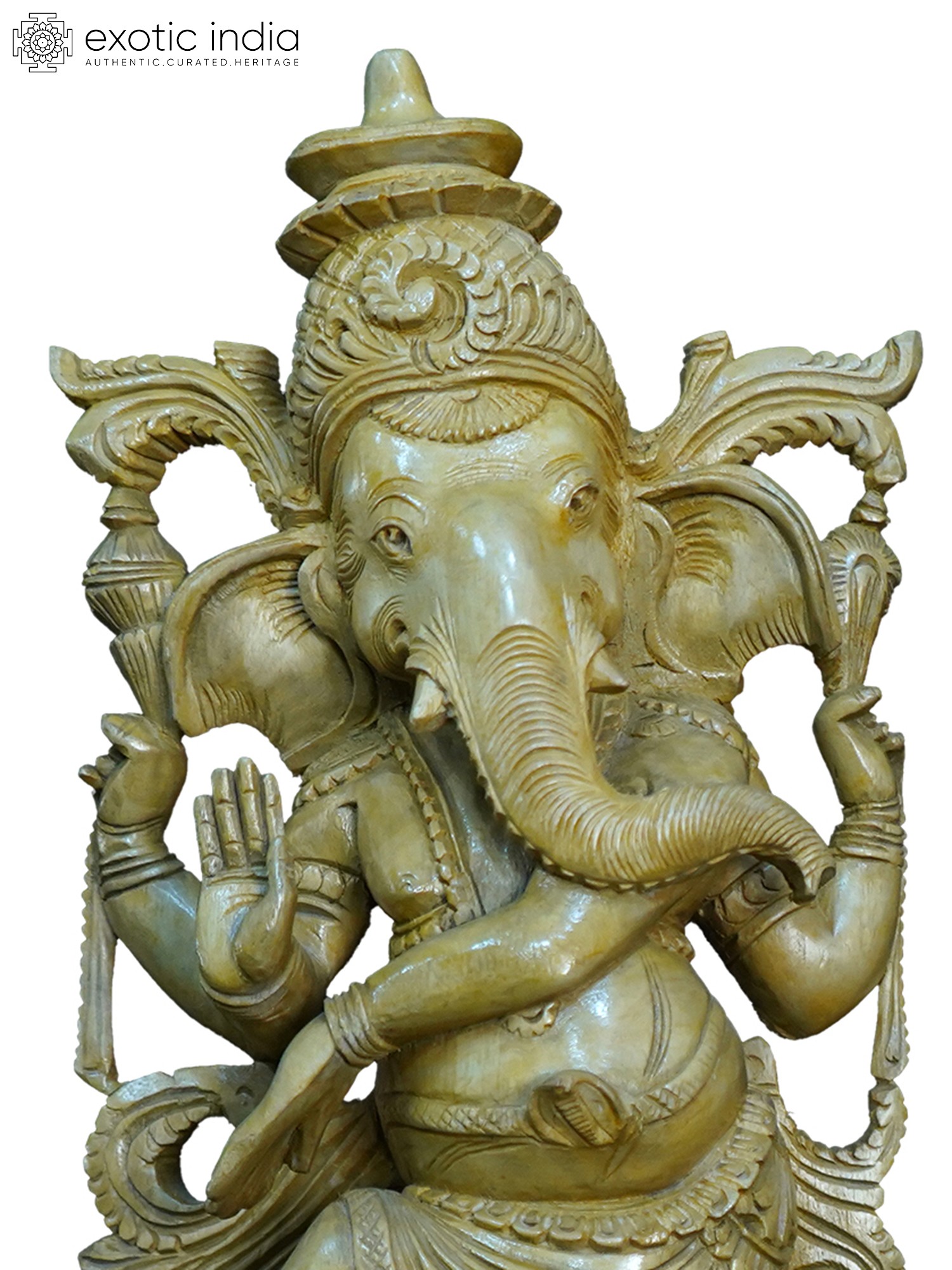 Large Size Lord Ganesha Wooden Statue Seated atop His Vahana