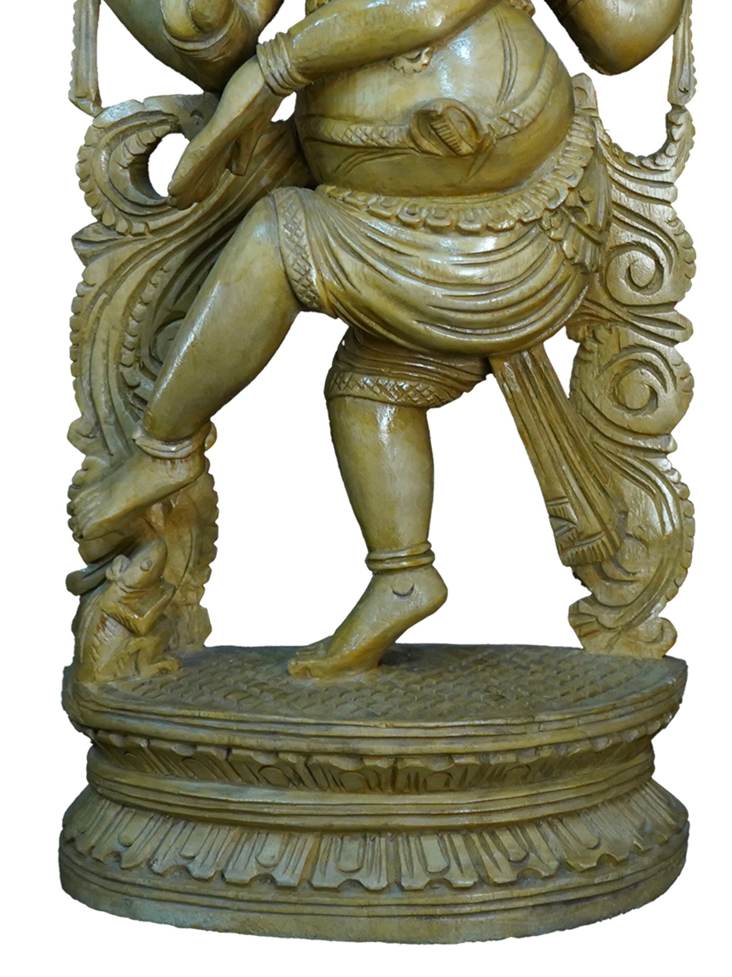 Wooden Sculpture of Lord Ganesha Plays the Shehnai