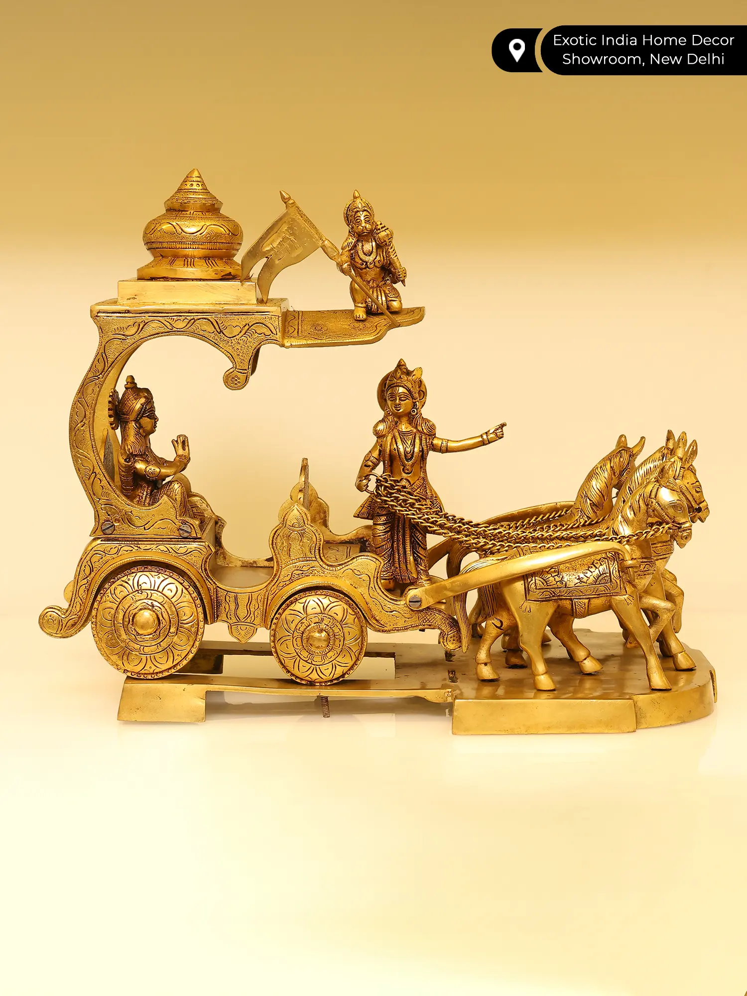 Immerse yourself in the profound teachings of Lord Krishna through this intricately crafted brass sculpture of the Gita Upadesha, made with love and devotion in India. The Bhagavad Gita, a 700-verse Hindu scripture, embodies the wisdom of Lord Krishna. The Gita's verses offer guidance on duty, righteousness, and the path to spiritual realisation. This sculpture brings these eternal teachings to life. Enrich your spiritual journey with this remarkable representation of the Gita Upadesha, reminding you of the timeless wisdom within its verses.