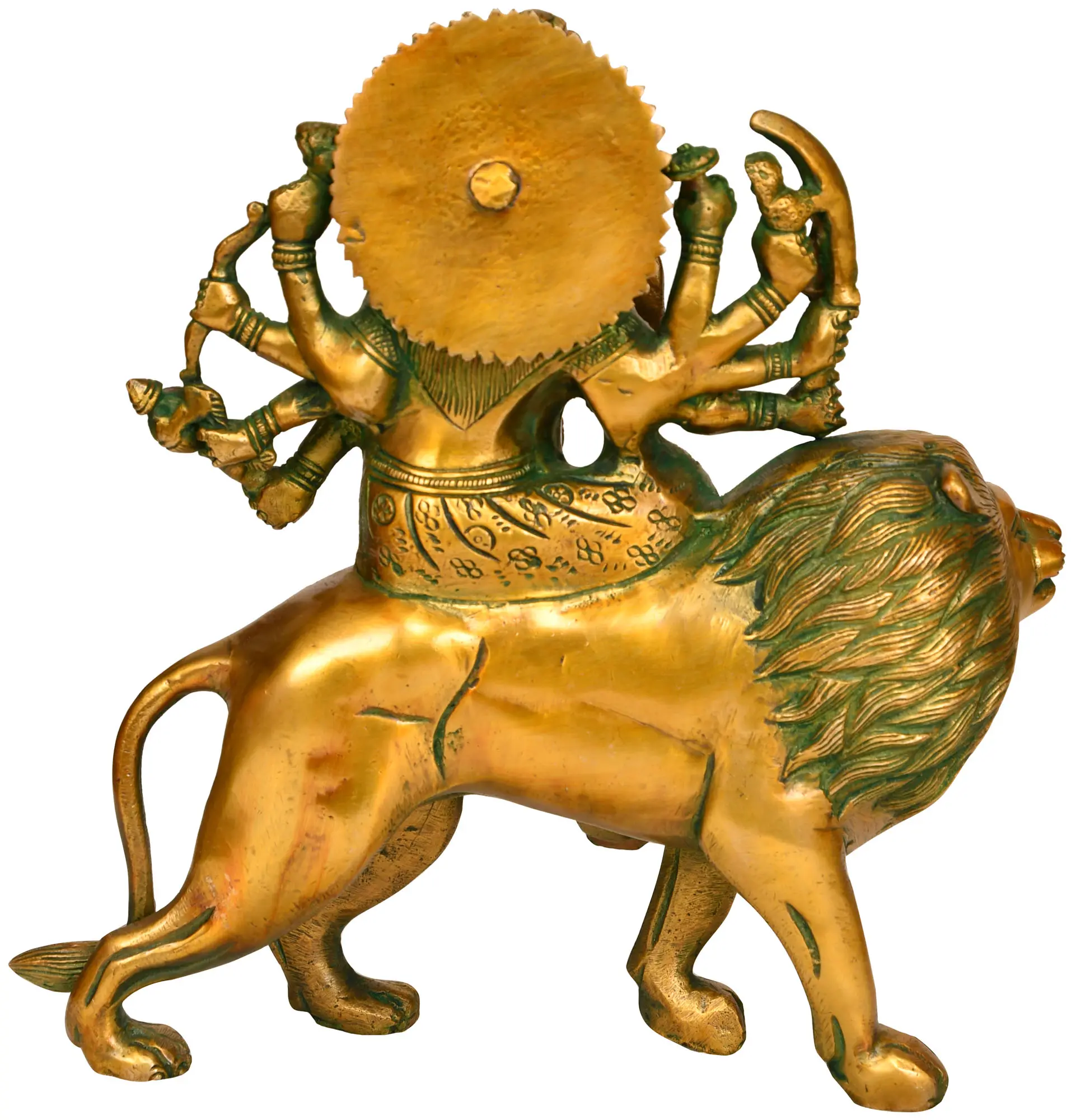 16" Goddess Durga on Her Mount Lion In Brass | Handmade | Made In India