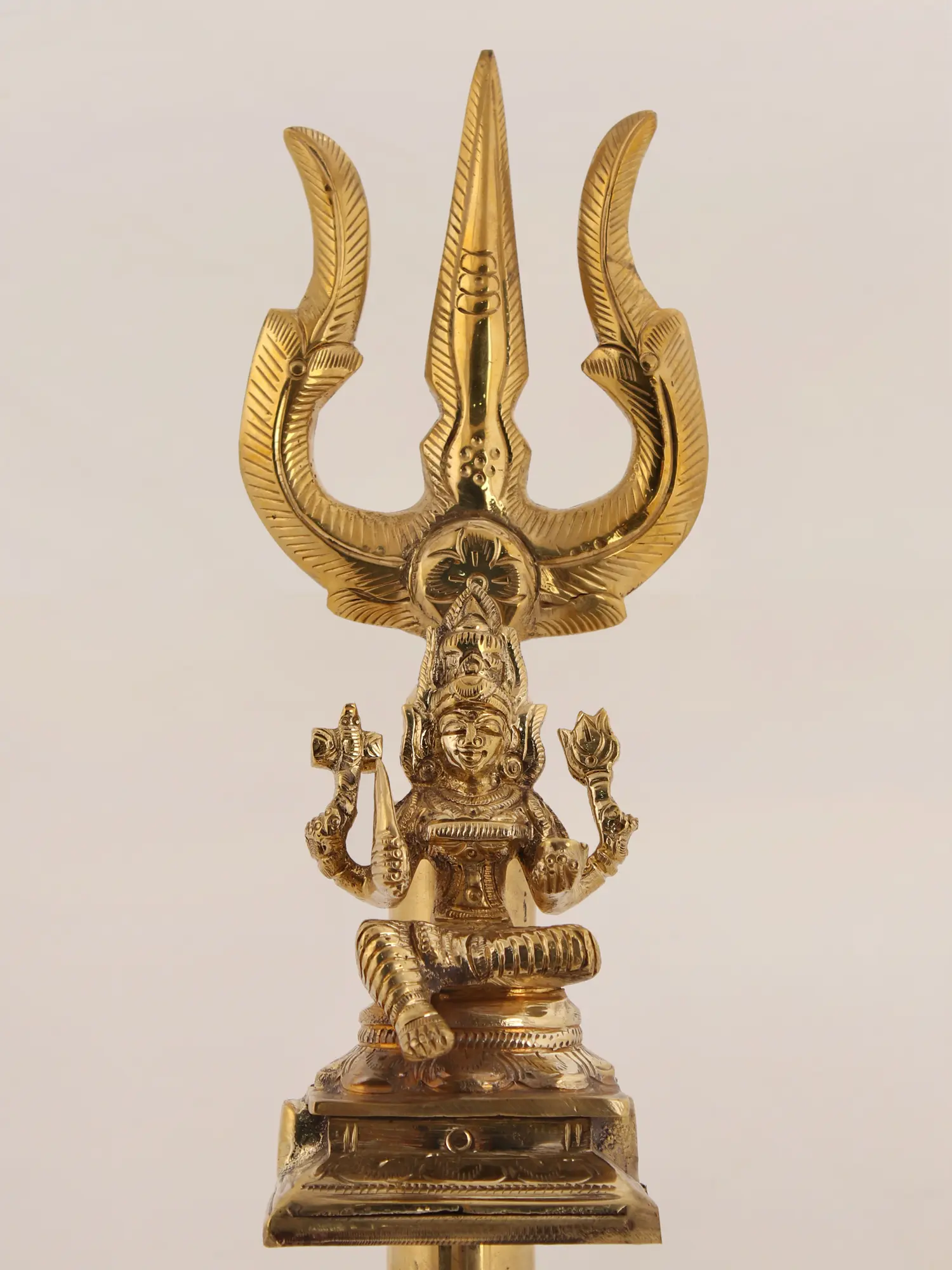 12" Standing Lord Shiva's Trishul (Trident) in Bronze