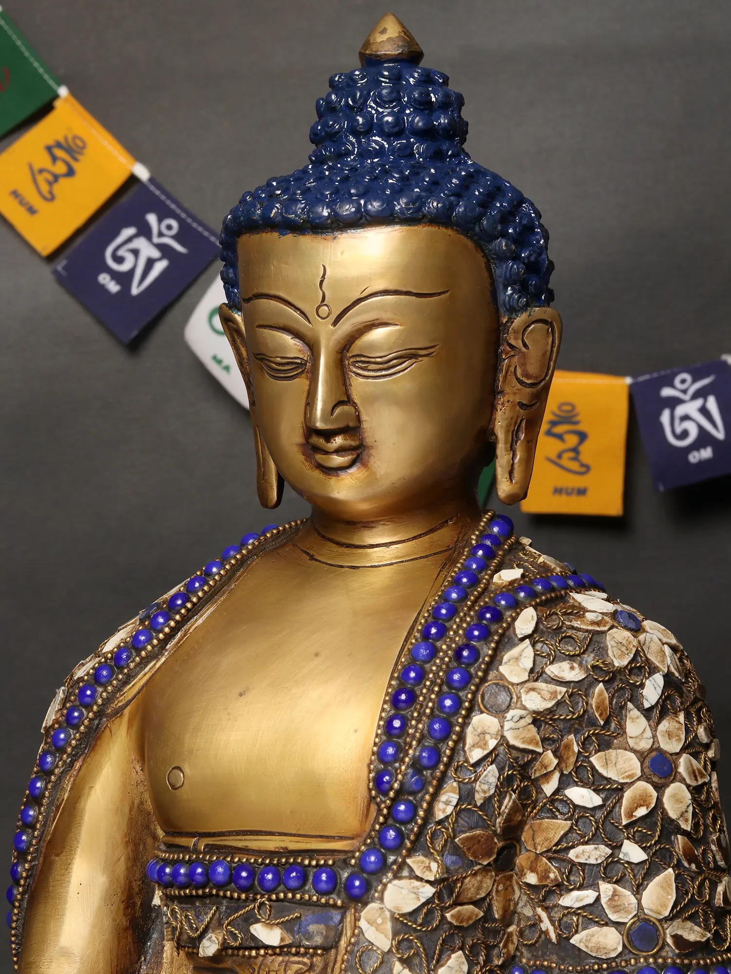 The intricate detailing and vibrant inlays enhance its visual appeal, making it a striking centerpiece for any altar or meditation area.